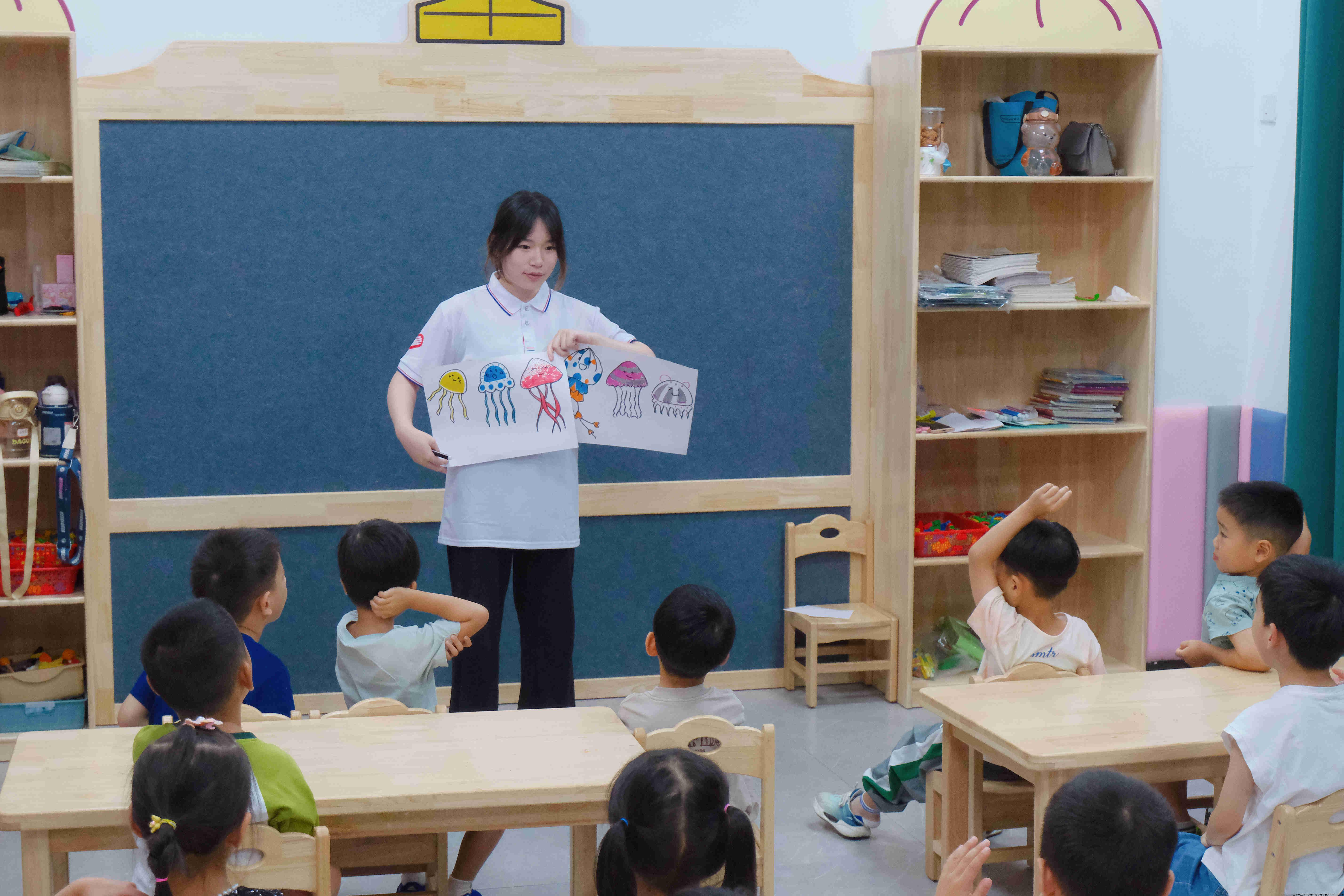 活动现场,走园路上党旗飘志愿服务队的大学生志愿者们声情并茂地向孩子们介绍了八婺大地的红色记忆,金华历史上的革命先烈英勇奋斗的故事。随后,志愿者们还给孩子们带去丰富的课程,绘画课、手工课、创意课……大学生志愿者不仅提供了专业的指导,还积极与小朋友们互动,他们认真倾听孩子们的想法,与他们一起探索绘画和手工的乐趣。让孩子们感受到了来自大哥哥大姐姐的关爱,也让他们更加自信地展示自己的才华。