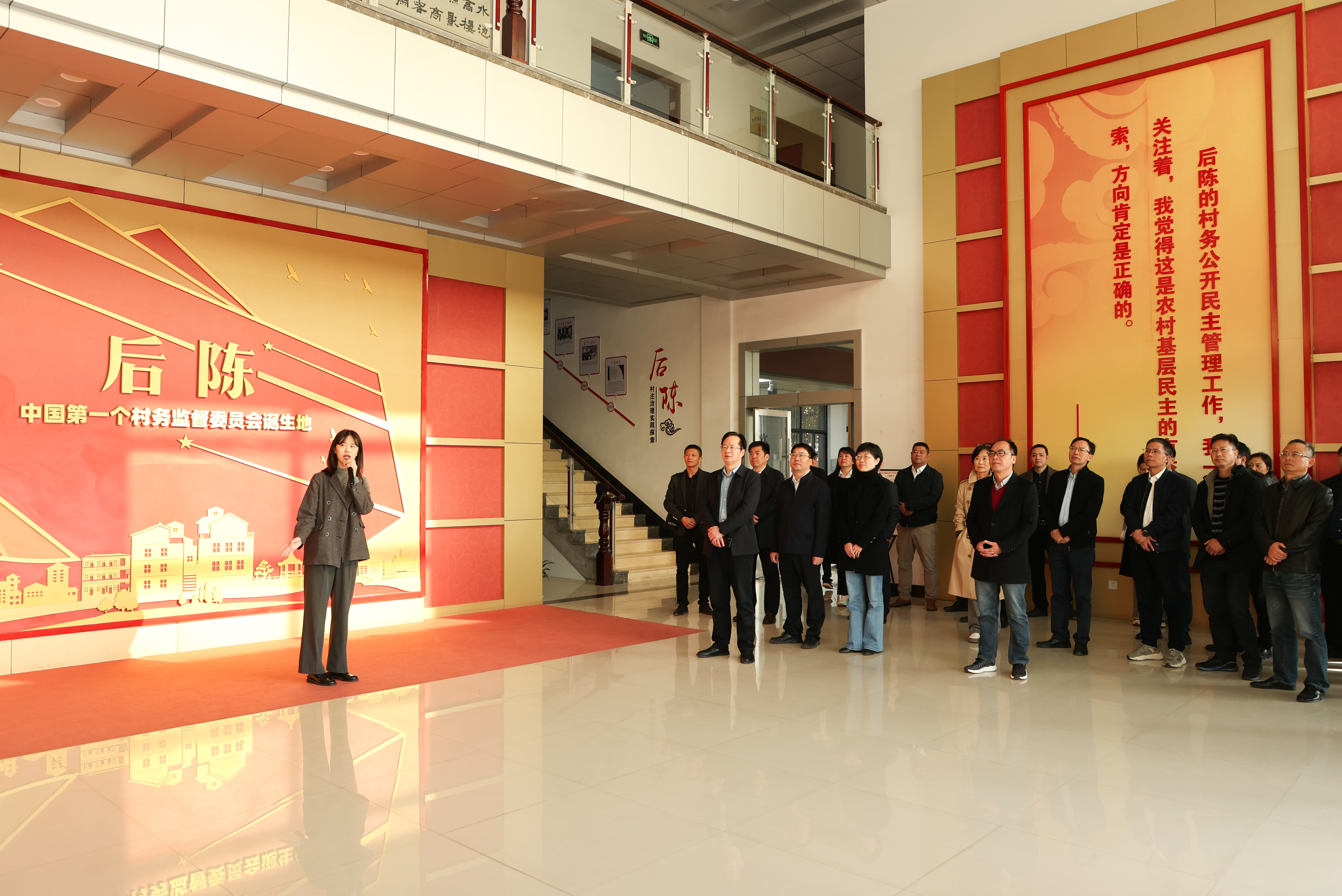 循着习近平总书记在浙江工作期间考察调研金华的足迹,学习人员一行来到了武义县白洋街道后陈村。作为全国村务监督委员会制度的发源地,后陈村首创了以村务监督为核心的基层治理运行体系。2005年6月17日,时任浙江省委书记习近平到后陈村调研,对这一基层创新给予充分肯定,并亲自提炼为“后陈经验”,在持续关注下由一项“治村之策”上升为“治国之计”。大家走进后陈村老办公楼,实地考察了后陈村村务监督委员会原址,深刻领悟习近平总书记对后陈村的殷切嘱托。接着,来到“后陈经验”展示馆,认真参观学习了后陈模式的探索、“后陈经验”的推广等篇章,深入学习领会习近平总书记对“后陈经验”的系列重要指示批示精神。