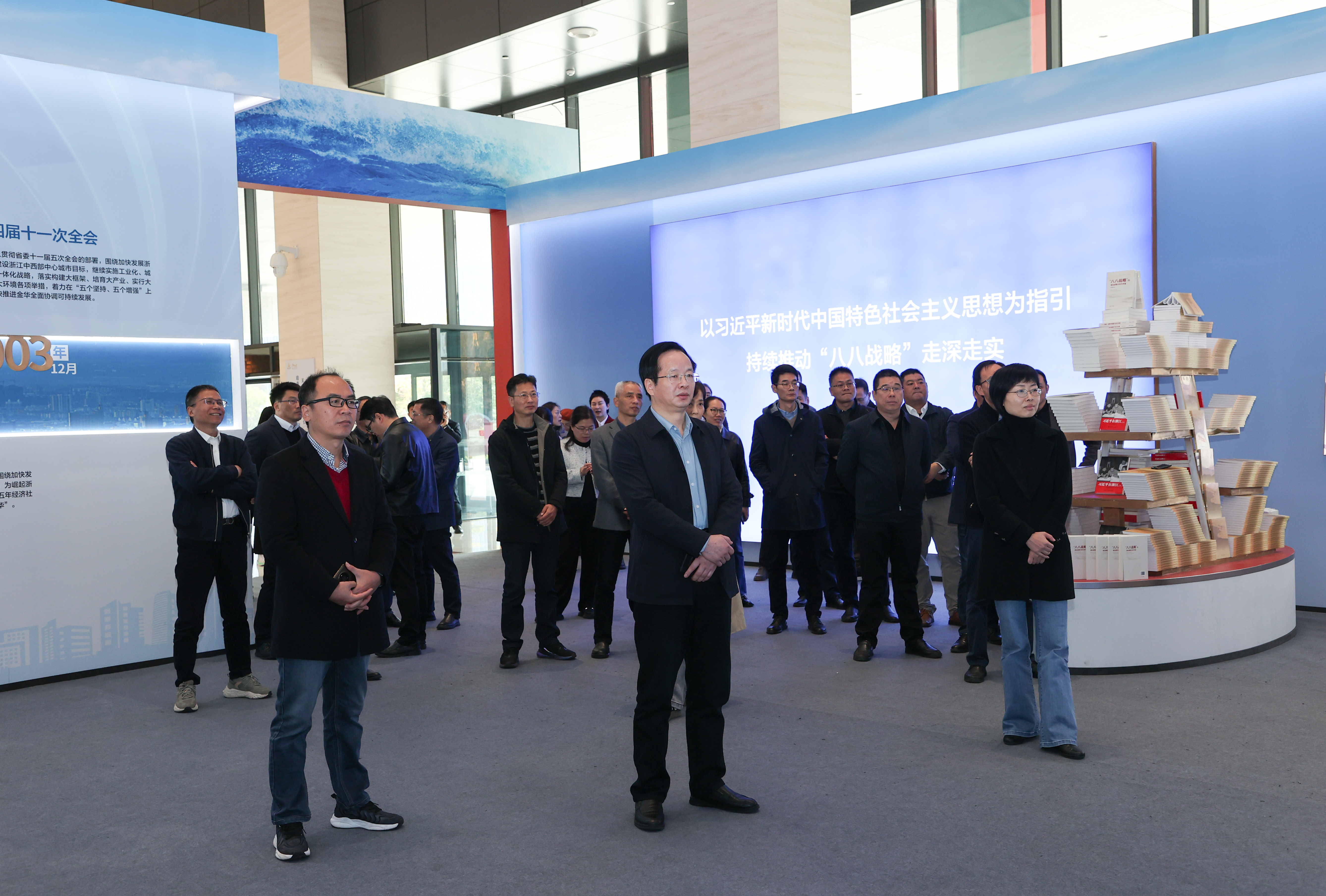 随后,学习人员一行来到金华市城市展览馆参观“八婺巨变——‘八八战略’在金华主题展”,在八婺巨变中感受真理伟力。