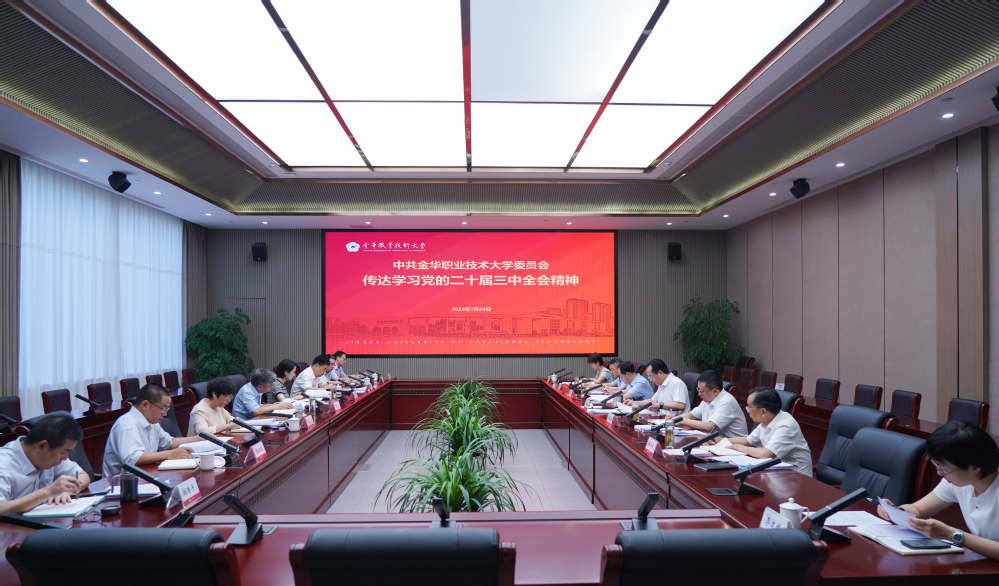7月24日上午,金职大党委召开党委会(扩大)会议,传达学习党的二十届三中全会精神,并就学习贯彻落实全会精神进行部署。学校党政领导班子成员及相关部门负责人参加会议,会议由党委书记王振洪主持。