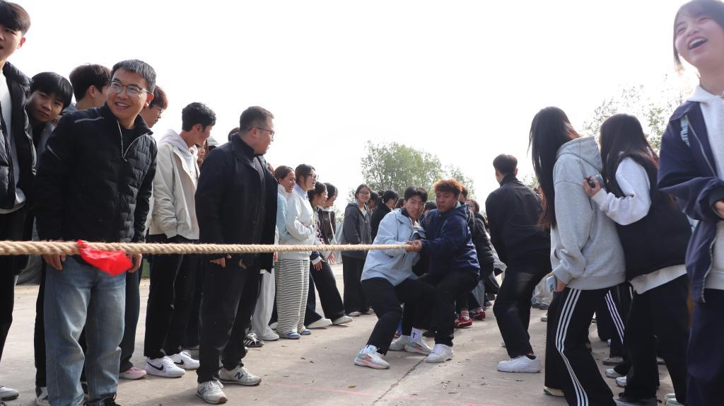 抵达翠山观景台,短暂休整环节过后,精彩的集体文体活动随即拉开帷幕。班级拔河比赛中,各参赛班级队员紧握长绳、脚蹬实地,伴随着现场观众的齐声呐喊,拼尽全力向后发力,绳索上的红线在两队之间来回拉锯,每一个动作都凝聚着团队的力量;接力赛现场更是紧张激烈,参赛选手们默契配合,快速交接接力棒,用速度与激情演绎着团结协作的体育精神,现场欢呼声、喝彩声此起彼伏。