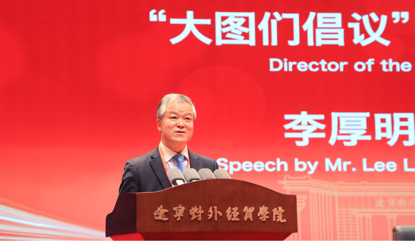辽宁对外经贸学院党委书记王万义、“大图们倡议”秘书处主任李厚明、中国国际贸易学会会长金旭、辽宁省商务厅副厅长路云飞、大连市人民政府副秘书长周延先后致辞,聚焦东北亚高水平开放共绘新蓝图。
