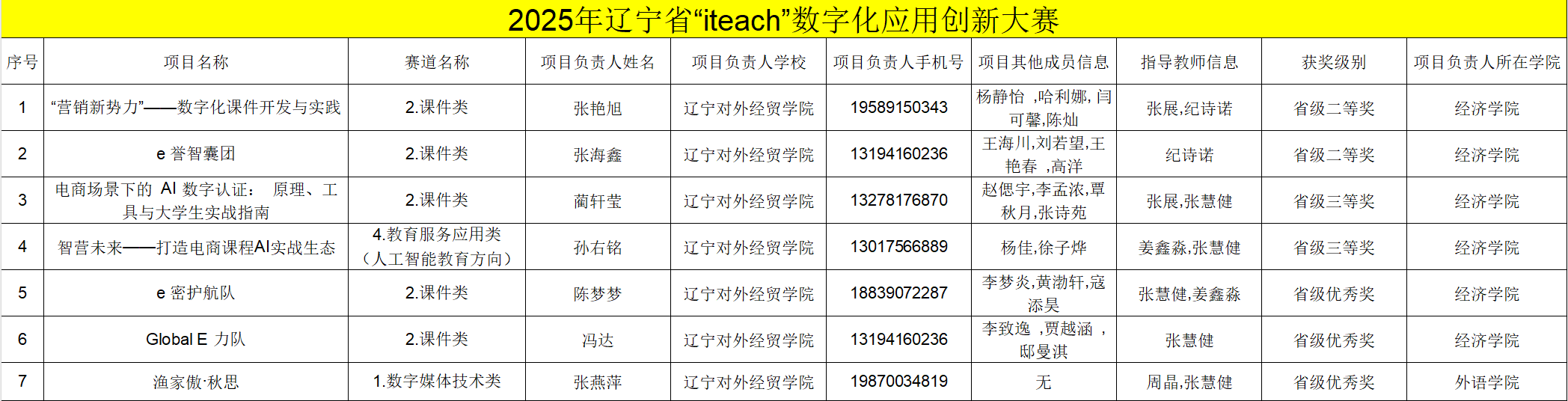 辽宁对外经贸学院经济学院在第五届辽宁省大学生“iTeach”数字化教育应用创新大赛中获奖