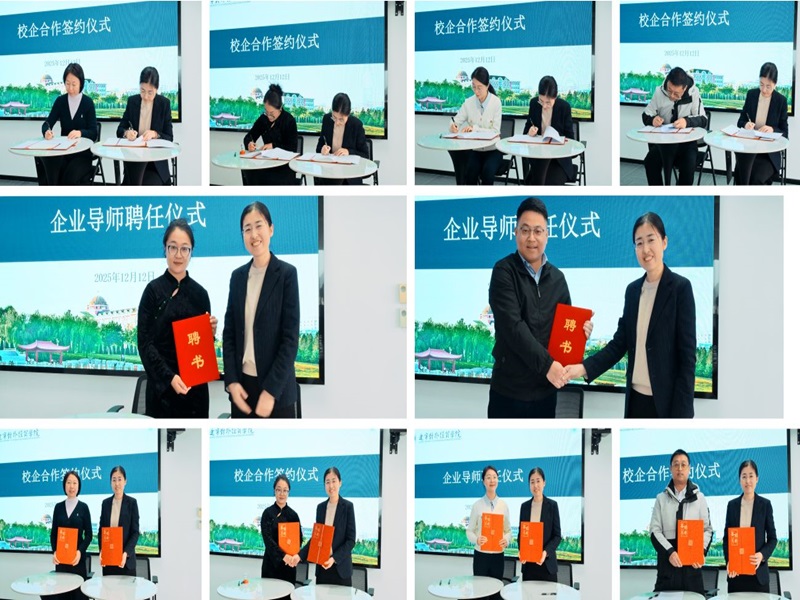 会上,跨境电商产业学院与西姆集团有限公司、上海中远海运集装箱运输信息服务有限公司、大连福优特国际贸易有限公司和大连瑞驰食品有限公司举行了校企合作签约仪式。同时,聘请大连万众云仓科技孵化园有限公司总经理连世超、大连福优特国际贸易有限公司总经理刘旭担任企业导师。