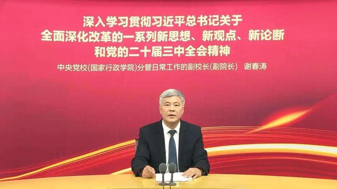 报告中,谢春涛副校长(副院长)从党的二十届二中全会以来党和国家事业取得的成绩、党的二十届三中全会主题、进一步全面深化改革的重要性和必要性、习近平总书记关于全面深化改革的一系列新思想、新观点、新论断、进一步全面深化改革的重大原则、进一步全面深化改革的重大决策等方面对党的二十届三中全会精神进行了全面、系统、深入地解读,深刻剖析了全面深化改革的内涵与时代要求。