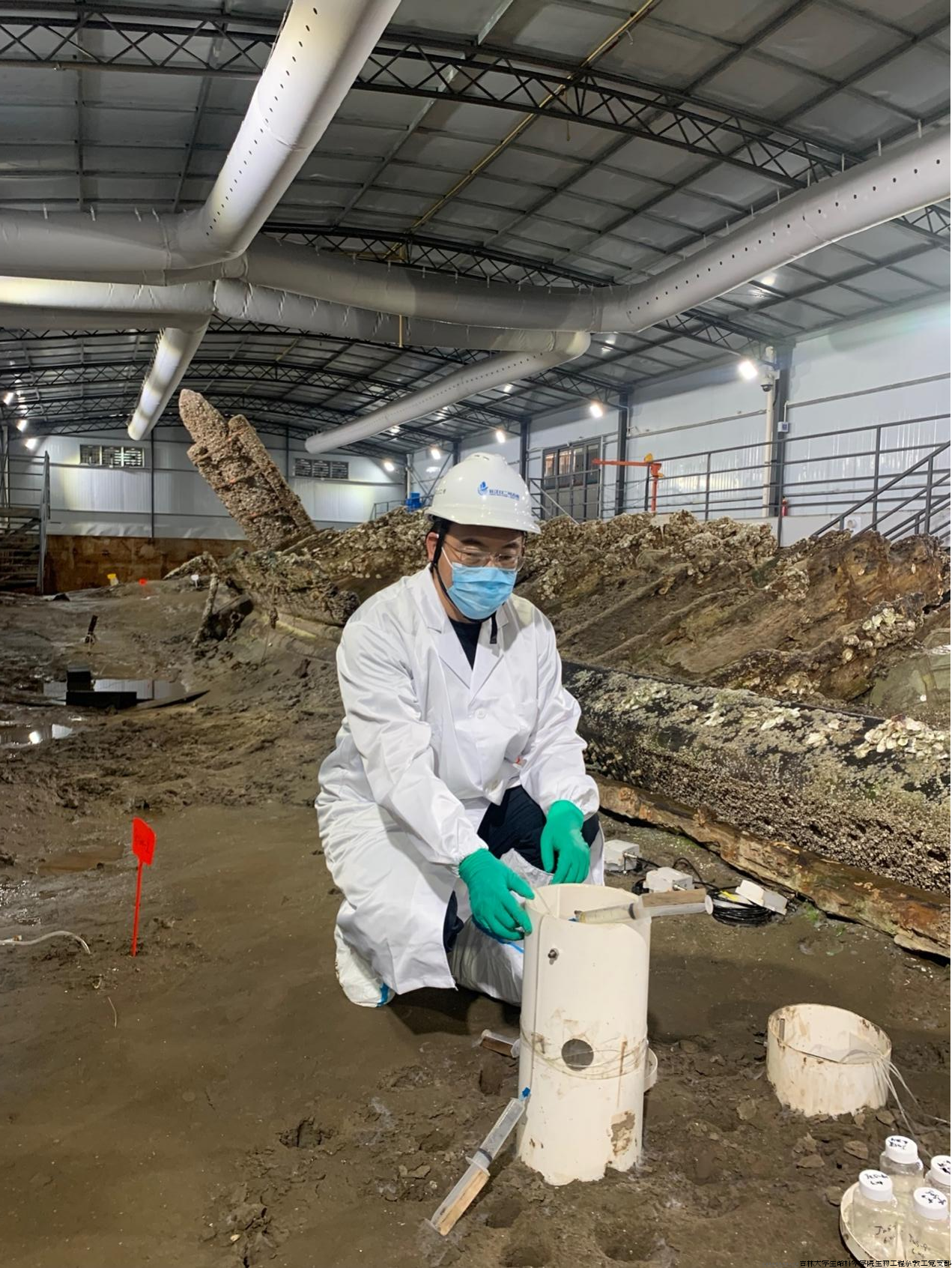 “长江口二号”古船的发掘是近年来备受关注的水下考古项目。作为中国古代海上丝绸之路的重要见证,这艘沉船的发现为研究中国古代海上贸易和造船技术提供了宝贵的实物资料。吕绍武教授团队在第一时间到达古船打捞现场并对古船情况进行检测与记录,与水下考古队通力合作对“长江口二号”古船进行科学的生物防治。
