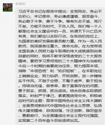 深入推进新时代党的建设新的伟大工程,作为基层教育工作者,我们必须保持自信果敢、自强不息的精神风貌,保持定力、勇于变革的工作态度,永不懈怠、锐意进取的奋斗姿态,使各项工作更好体现时代性、把握规律性、富于创造性,为建设更美好的财经学院拼搏进取,不懈奋斗!