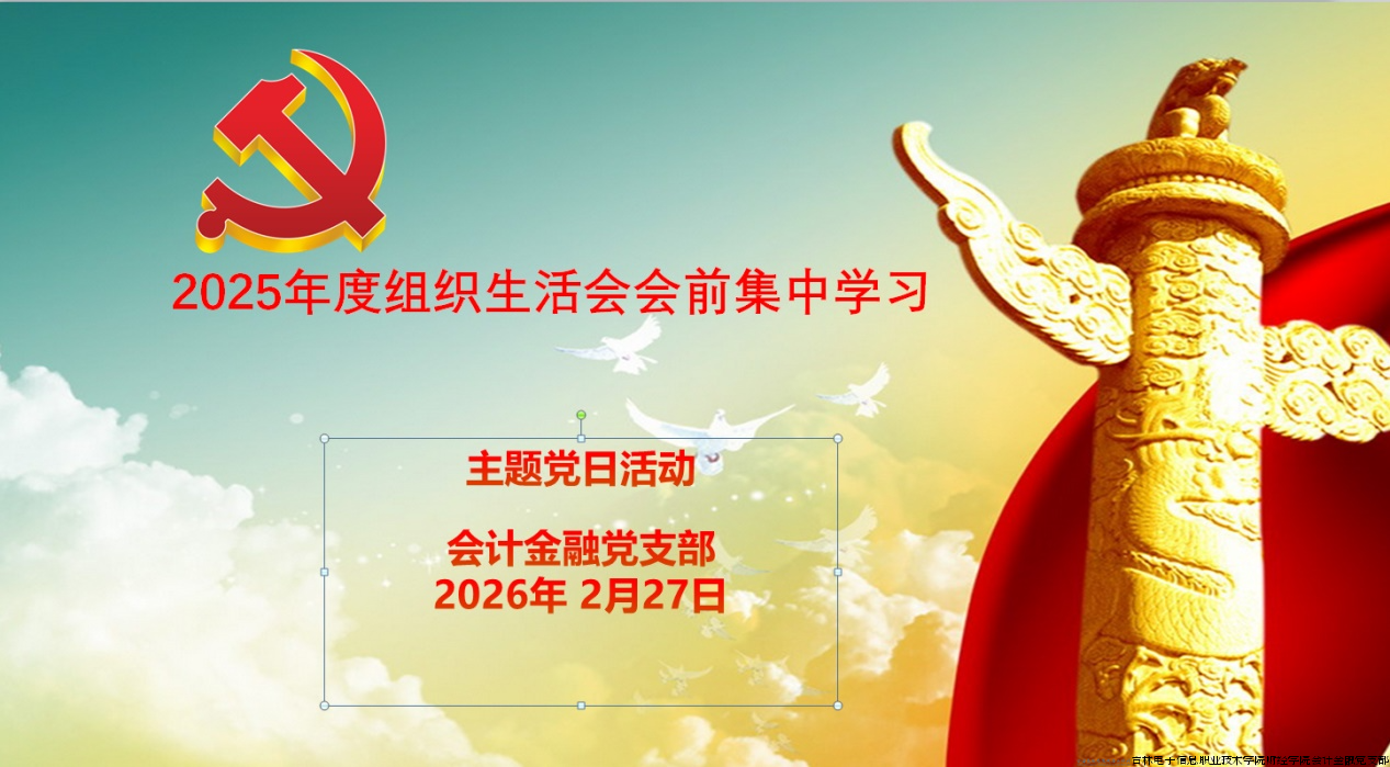 为扎实开好2025年度组织生活会,按照有关要求,2026年2月27日,会计金融党支部组织开展了2025年度组织生活会会前专题学习会议。会议由数字商贸学院党总支副书记、会计金融党支部书记吕岩荣主持,支部全体党员参加。