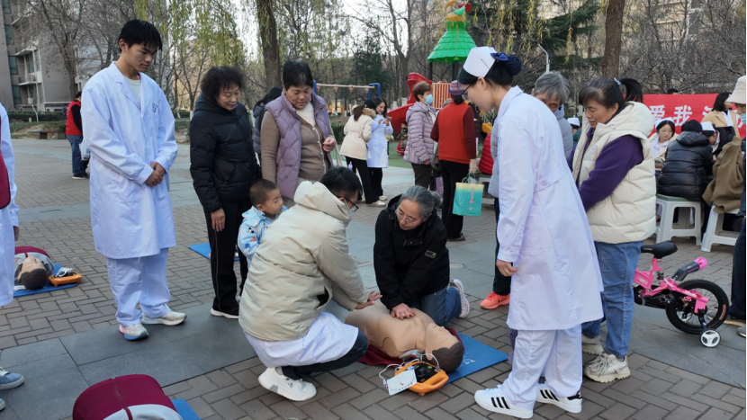 知识驱寒意,技能护平安。结合冬季居家时间长、意外伤害风险相对增加的特点,党员师生特意设置了一场实用的“急救微课堂”。充分利用模拟人教具,生动演示了“海姆立克急救法”和“心肺复苏术”急救技术。许多居民从最初的驻足聆听,到后来踊跃上前亲手练习,现场气氛热烈。