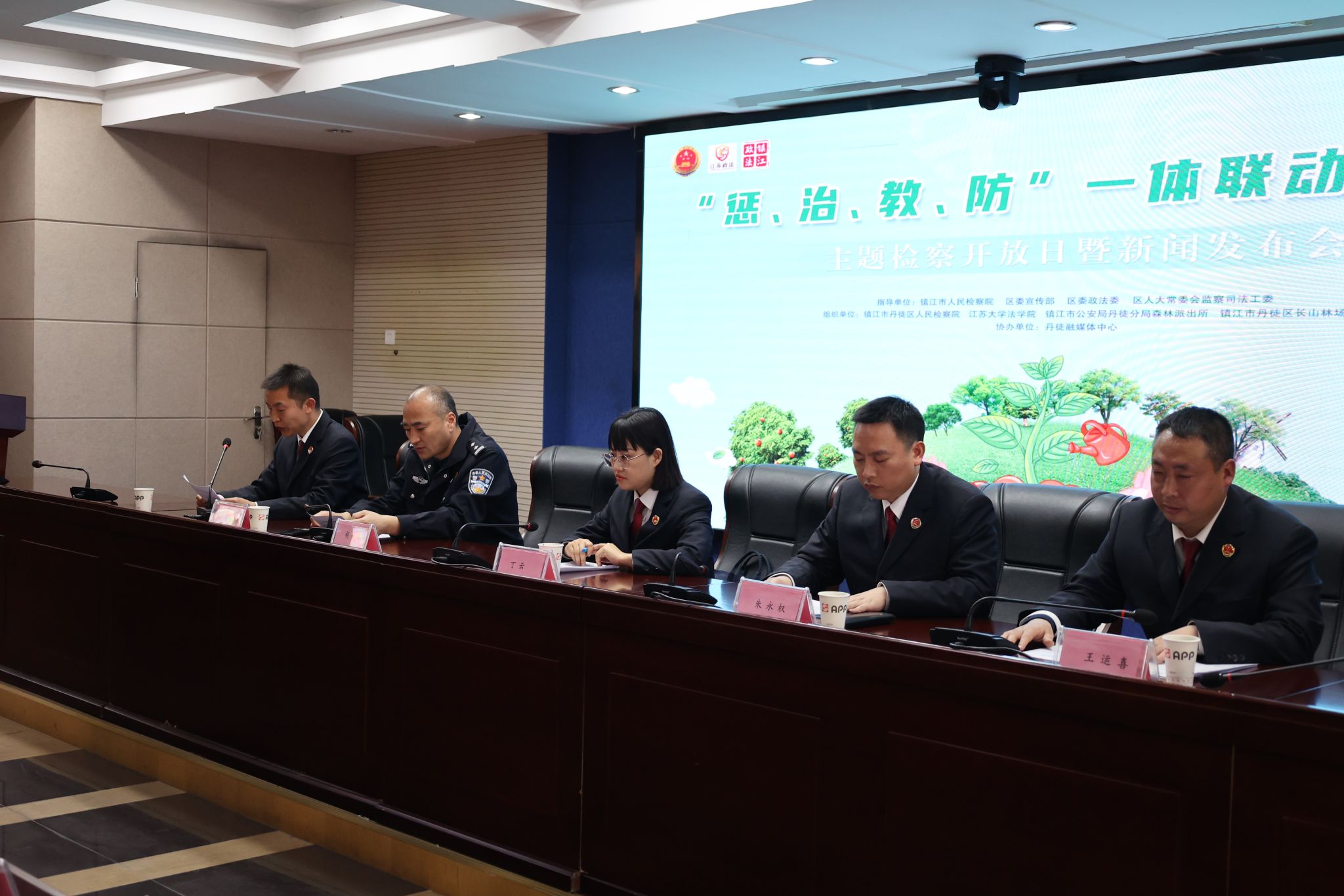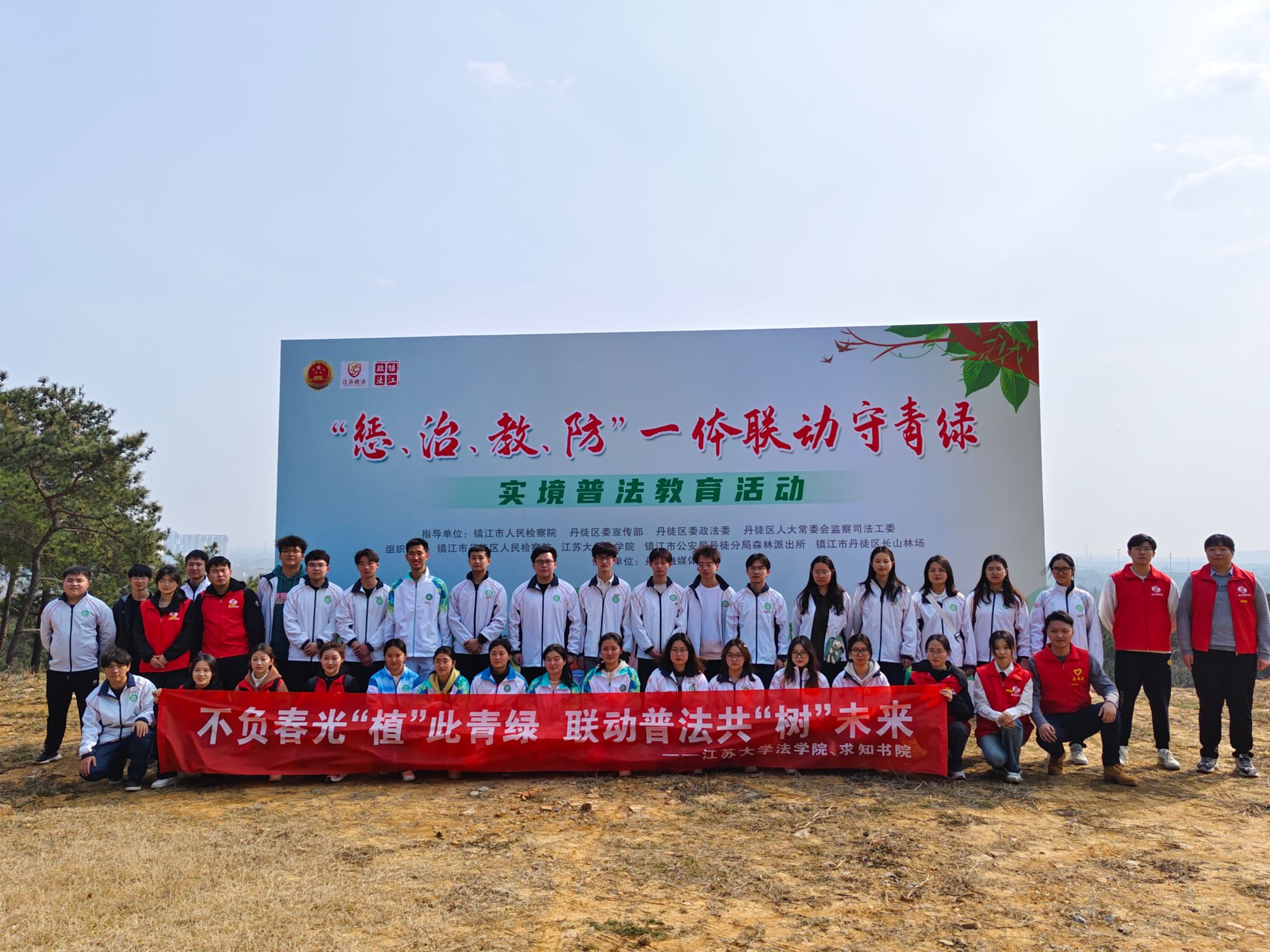 为充分发挥生态环境司法保护能动作用,3月11日下午,在镇江市人民检察院、丹徒区委宣传部、丹徒区委政法委、丹徒区人大常委会监察与司法工委工作指导下,江苏大学法学院、求知书院联合镇江市丹徒区人民检察院、镇江市公安局丹徒分局森林派出所、镇江市丹徒区长山林场组织开展“惩、治、教、防”一体联动守青绿主题检察开放日暨新闻发布会活动。镇江市丹徒区人大代表,江苏大学法学院党委副书记、副院长王鹏,师生志愿者以及公安、林场、媒体等代表60余人受邀参加活动。