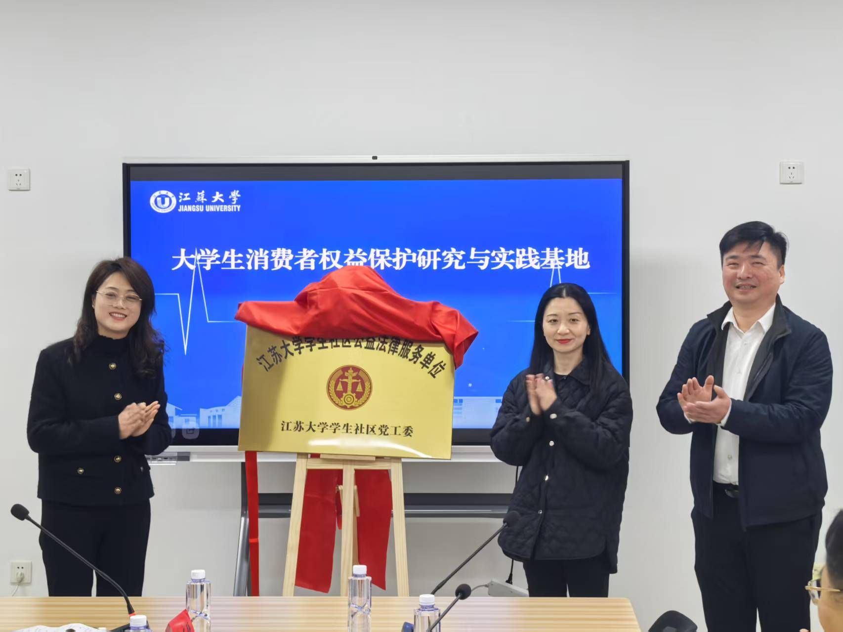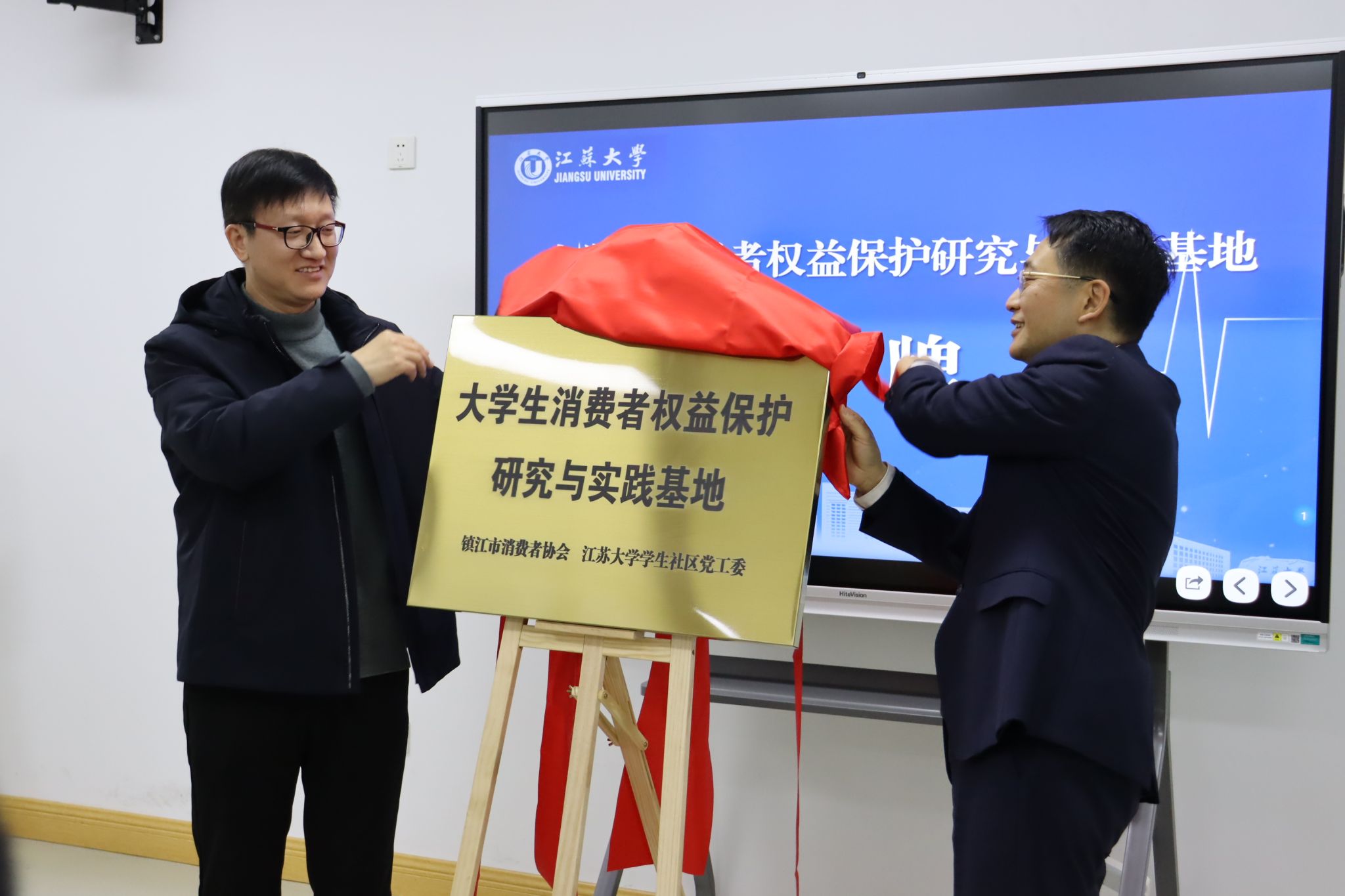 镇江市市场监督管理局副局长、镇江市消费者协会执行副会长徐艺与李炳烁共同为“大学生消费者权益保护研究与实践基地”揭牌。基地将依托江苏大学法学院的师资力量和学术资源,开展消费者权益保护的理论研究与实践探索,为地方经济社会发展提供智力支持和人才保障。