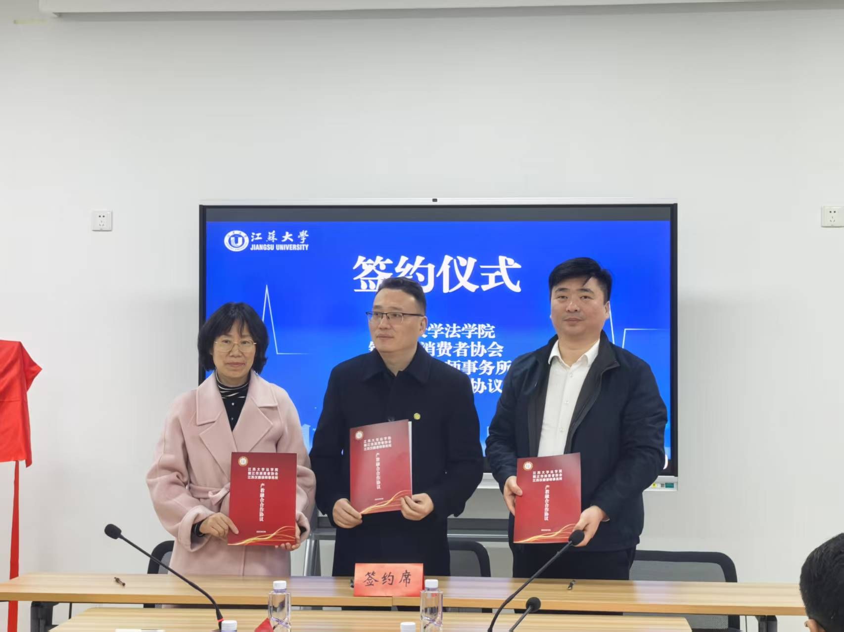 江苏大学法学院、镇江市消费者协会、江苏汉爵律师事务所分别代表三方签署合作协议。未来,三方将围绕消费者权益保护开展学术研究、人才培养、社会服务等多方面的深度合作,共同探索高校与社会协同发展的新模式。