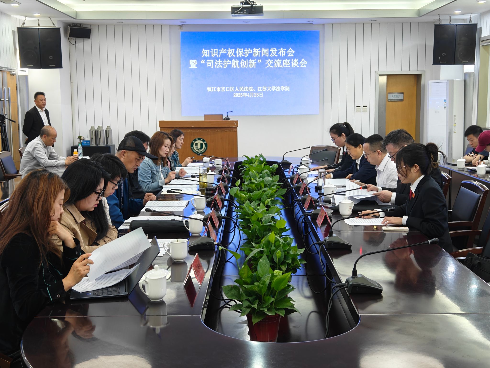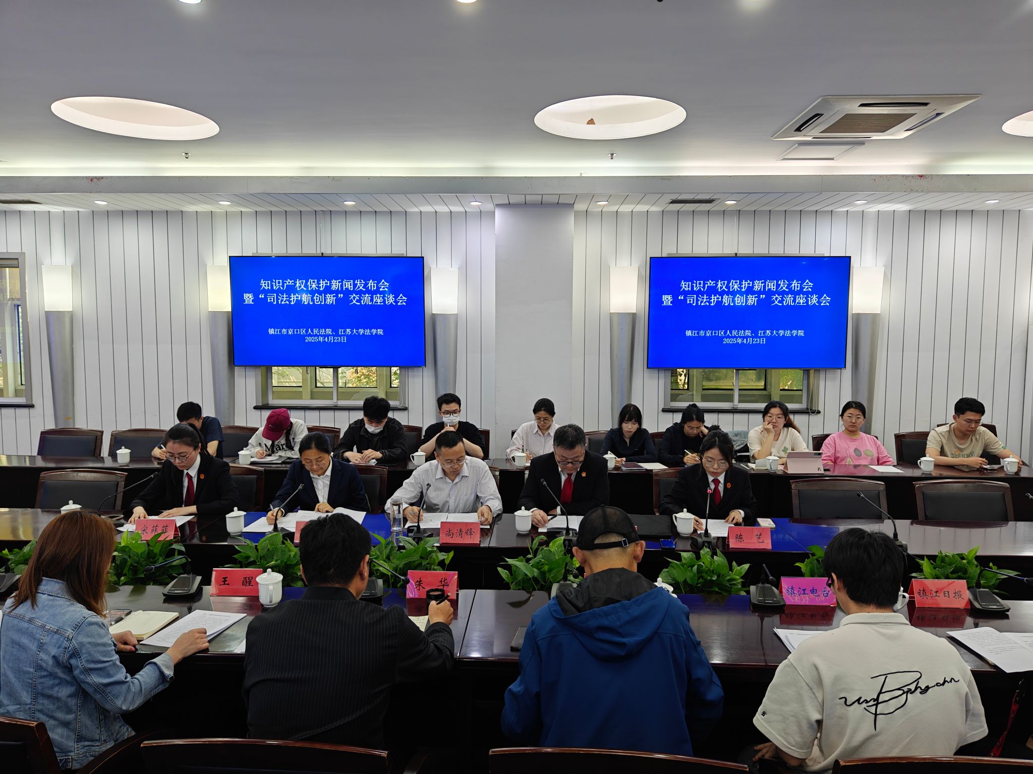 4月23日,知识产权司法保护新闻发布会暨司法护航创新交流座谈会于江苏大学顺利召开。座谈会以“司法护航创新 知产共话未来”为主题,京口区人民法院民一庭庭长杨毅及干警代表,江苏大学法学院副教授尚清锋、周爱春,区人大代表朱华、王醒,区政协委员李宏等出席,镇江电台、镇江日报、现代快报多家媒体参与报道。
