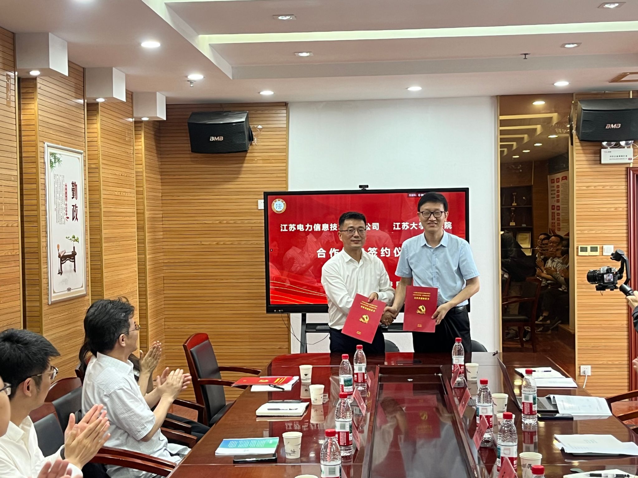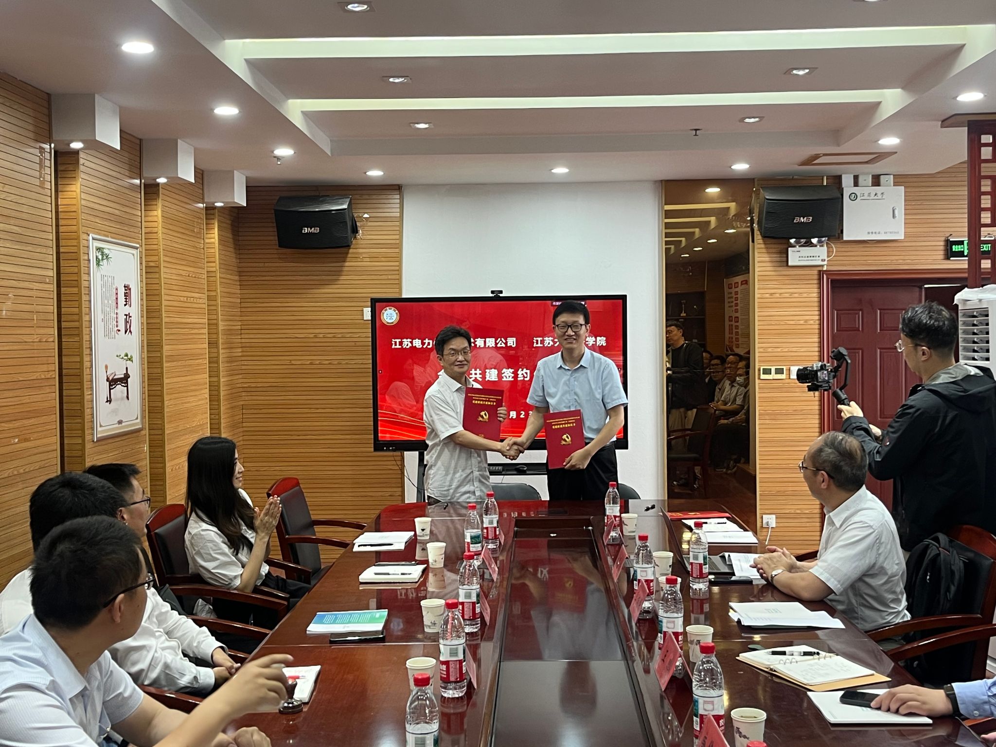 戢李刚、曹震与李炳烁分别签订“江苏电力信息技术有限公司纪委、江苏大学纪检监察学院合作共建协议”“中共江苏电力信息技术有限公司委员会企管业务中心党支部、中共江苏大学法学院教工第一支部委员会党建联建共建协议”。