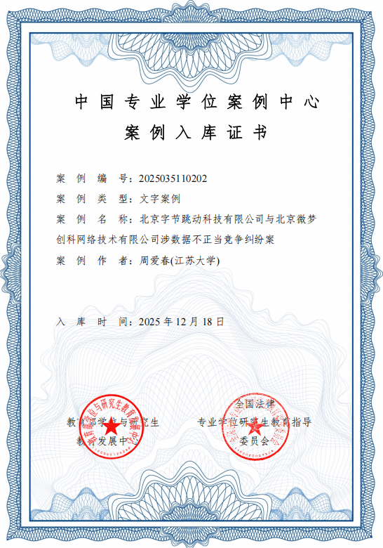 本次入选的五项案例涵盖涉外法治实务、民事法律实务、刑事法律实务等多个领域,分别聚焦法律尽职调查、数据治理、刑事司法与公益诉讼等重点与前沿问题,回应了当前法治建设与国家战略对高层次法律人才教育培养的迫切需求,具有较强的教学应用与实践指导价值。
