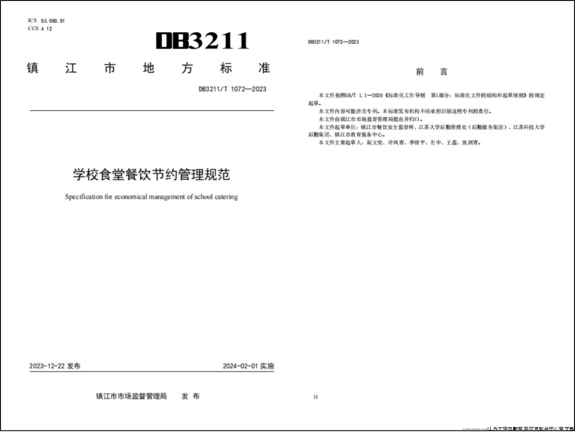 近日,饮食服务中心党支部书记联合相关单位人员共同发布《学校食堂节约管理规范》,该管理规范由饮食服务中心党支部书记许凤青、镇江市餐饮安全监督所阮文俊等人共同起草发布。