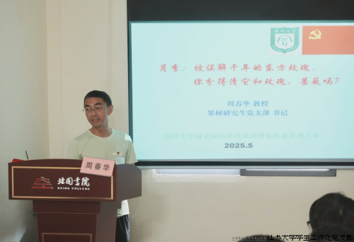 为深化新时代高校党建与劳动教育融合,构建校际基层党组织协同育人新格局,5月20日下午,江苏大学北固书院功能型党支部与扬州大学园艺园林学院研究生第三党支部联合开展“党建+劳育”联学共建暨主题党日活动。扬州大学园艺园林学院党委副书记张琼,研究生党支部书记、博士生导师周春华教授,园林系主任、博士生导师赵大球教授,江苏大学北固书院党总支副书记张钧,后勤管理处公寓服务中心主任钱宇平等领导及两校师生党员代表参与活动。