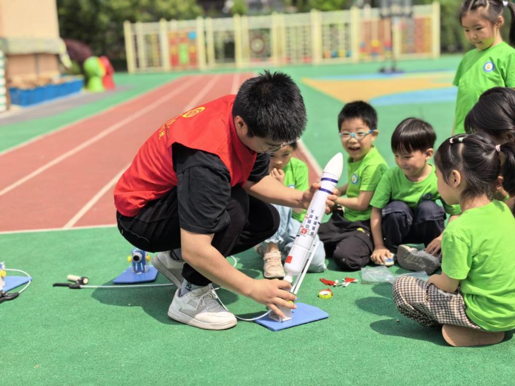 活动现场,来自苏电院的大学生志愿者们化身科技启蒙者与非遗文化传承者。在风车制作环节,他们生动讲解,耐心指导,手把手教孩子们折叠、裁剪、组装。微风拂过,彩色风车的轻快旋转瞬间点亮满场喜悦。随后,活动高潮层层迭起。“电动龙舟”组装与竞赛中,志愿者与孩子们通力合作,将零件化为模型,赛道上的疾驰引来阵阵欢呼。“火箭升天”环节更是引爆热情,在大哥哥大姐姐指导下组装完成后,孩子们亲手操作让火箭模型腾空而起,仰望天空的小身影们充满对宇宙的憧憬。为护航即将到来的假期,志愿者们精心准备了“安全急救知多少”活动,以趣味问答的形式将实用安全知识植入童心,提升自护意识。每一个活动环节,苏电院的大学生志愿者们都以专业热忱的行动,将现代科技的神奇魅力与端午文化的深厚底蕴巧妙编织进孩子们的心里。