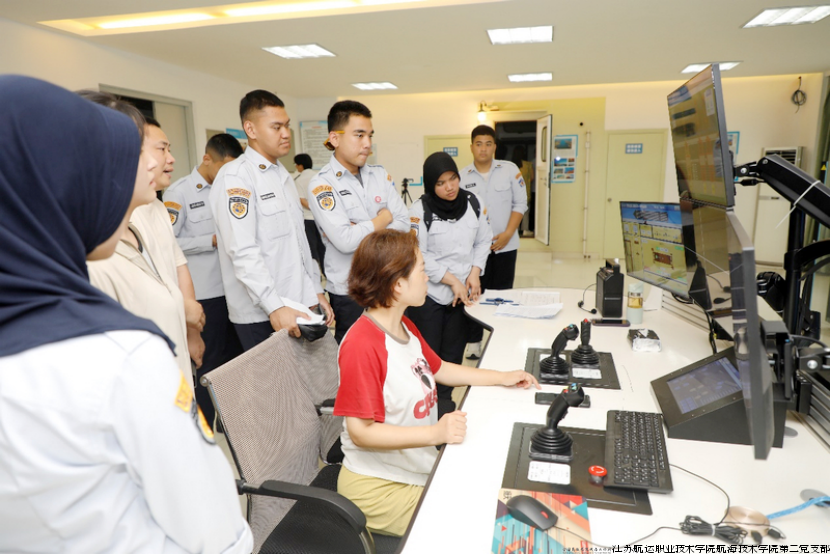 访学期间,印尼师生走进实训基地、聆听专家讲座、参与技能实操,先后参观了学校船舶操纵模拟训练中心,船舶轮机仿真训练中心,船舶与海洋工程产教融合实训平台,轨道专业实训基地等校内实训场所,沉浸式体验了以适配岗位需求、工作过程导向、数智技术赋能等为特色的职教“金课”;分专业举办了“跨境混编师资团队”研讨会,就合作办学、专业共建、师资交流、教科研合作等领域开展了深入讨论,为双方院校发展、学生培养提供国际化教育平台。