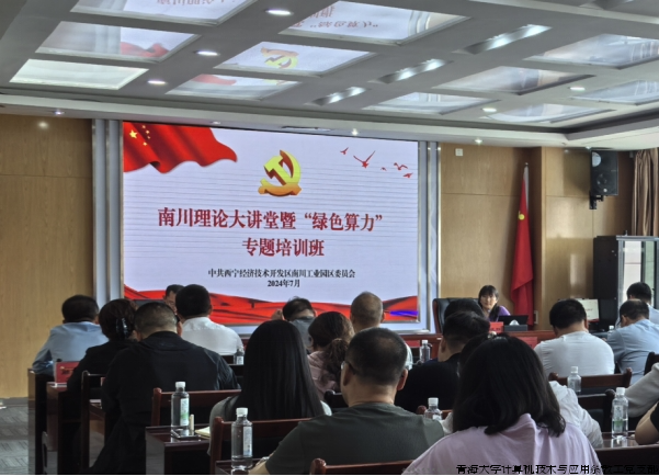 2024年,时任青海省委书记陈刚在青海大学调研时强调,要聚焦绿色电力向绿色算力转变,加快发展以绿色算力为引领的新质生产力,探索多方算力互联互通机制,支撑全省绿色算力建设和应用。为了将绿色算力的理念深入人心,支部党员通过党课、主题党日等形式,深入学习并广泛传播绿色算力的理念与知识,学院党委副书记黄建强同志分别在省直机关处级干部培训会、省人大常委会举办的绿色算力产业高质量发展专题会上做报告,支部书记刘晓静同志分别为南川工业园区、城北区党政领导干部绿色算力培训班做绿色算力案例分析相关报告,党员李东、孟乔、刘玉利等均先后做过绿色算力相关报告。
