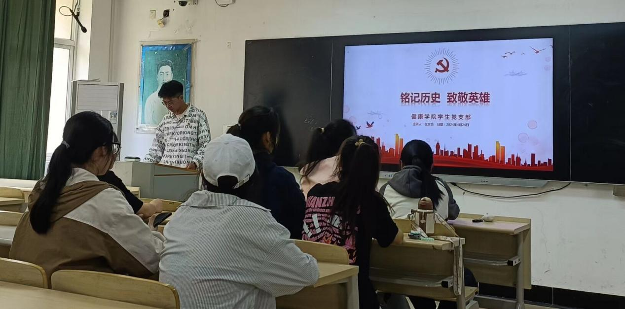 为了厚植同学们的爱国主义情怀,铭记光辉历史,传承红色精神,2024年4月24日下午,健康学院学生党支部于博雅楼108室组织开展学生党员讲党课活动。本次活动由学生党员张文恺主讲,部分入党积极分子参与。