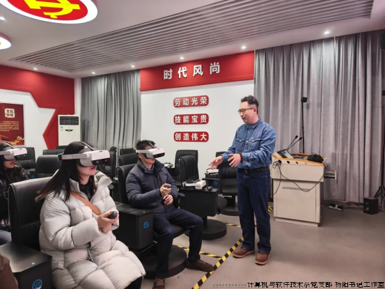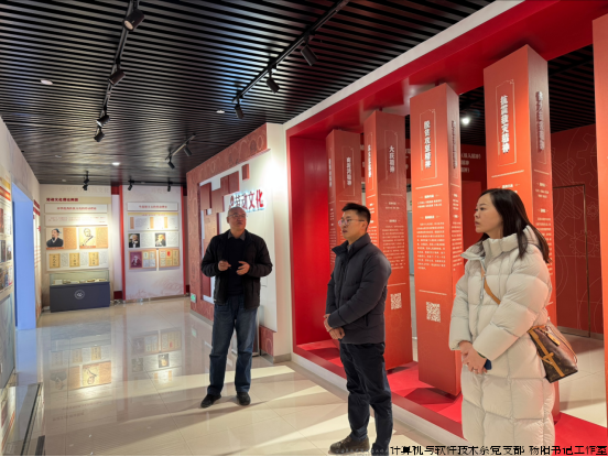 在信息工程系党总支的引导下,调研组实地参观了该系特色党建阵地。从寓意深远的党史台阶,到系统展示党的发展历程的党建文化长廊,再到融合现代信息技术的VR党建思政体验中心,调研组全面了解了信息工程系以红色文化为引领的浸润式育人模式。张昊楠副书记对该系在党建创新与思政育人方面取得的扎实成效表示高度赞赏。