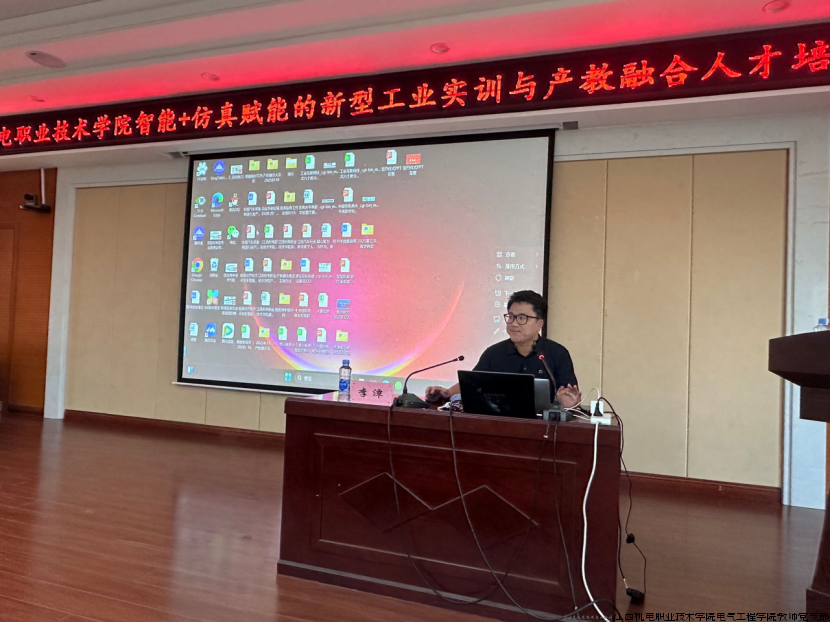 此次讲座主题是:智能+仿真赋能的新型工业实训与产教融合人才培养。李潭博士以图灵测试到具身智能为思路,从记忆、识别、思考与行动的人工智能发展不同阶段娓娓道来,给师生们介绍仿真、数字孪生与工业元宇宙的不同概念。他始终致力于推动“产、学、研、用”深度融合,带领青葵智造开发的虚拟仿真联调实训系统、数字孪生实时控制技术,基于智能+仿真的新型工业实训的三维化教材、游戏式课堂、实操式虚拟实训等多项成果,已广泛应用于工业实践与职业教育领域。