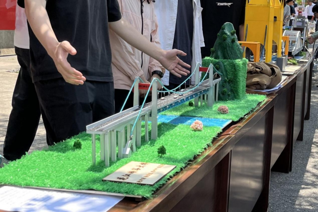 比赛现场既有传承多年的经典项目,如环刀法测土密度、灌砂法测压实度,选手们以分毫必争的严谨态度展现基本功的价值;也有紧扣行业趋势的创新赛道,如虚拟仿真、无人机航测。虚拟仿真赛项中,学生通过计算机建模技术模拟复杂工程场景,验证施工可行性;无人机赛区,操控手精准规划航线,快速完成地形测绘建模,充分体现了数字化技术在工程实践中的应用价值。桥梁模型制作赛区成为“未来工程师的摇篮”,参赛学生历经数周时间,从方案设计、材料选配到精密加工与组装,逐步攻克技术难点,最终在赛场呈现出一座座结构精巧的桥梁模型,在实践中深化了对桥梁结构与工程美学的理解。