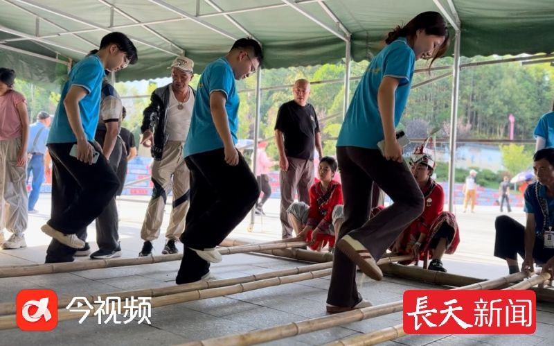 团队成员不仅聆听当地向导讲述婚俗故事,更亲身参与畲族竹竿舞,在舞动的竹竿间感受畲族文化的独特魅力。