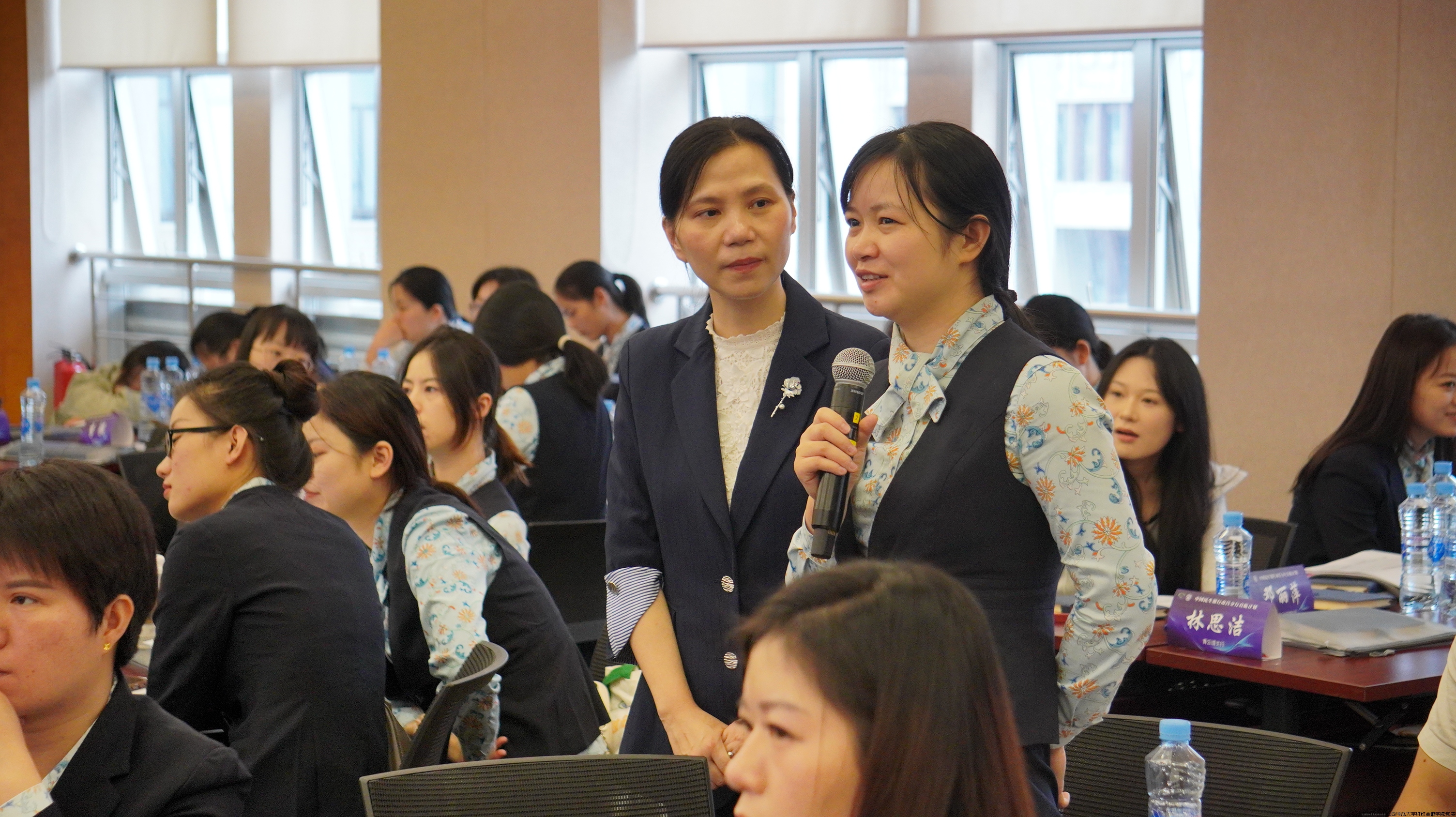 在授课过程中,钱颖教授指出,管理沟通的本质是换位思考,唯有先“礼”后“理”,以礼相待,积极克服沟通障碍,才能够为客户提供更加优质、高效的金融服务。通过生动有趣的专业讲解,钱颖教授还提出“三明治法”“刺猬法则”“职场用语软垫式”等客观实用的服务法则,提升了学员们的参与热情,获得学员一致认可与好评。
