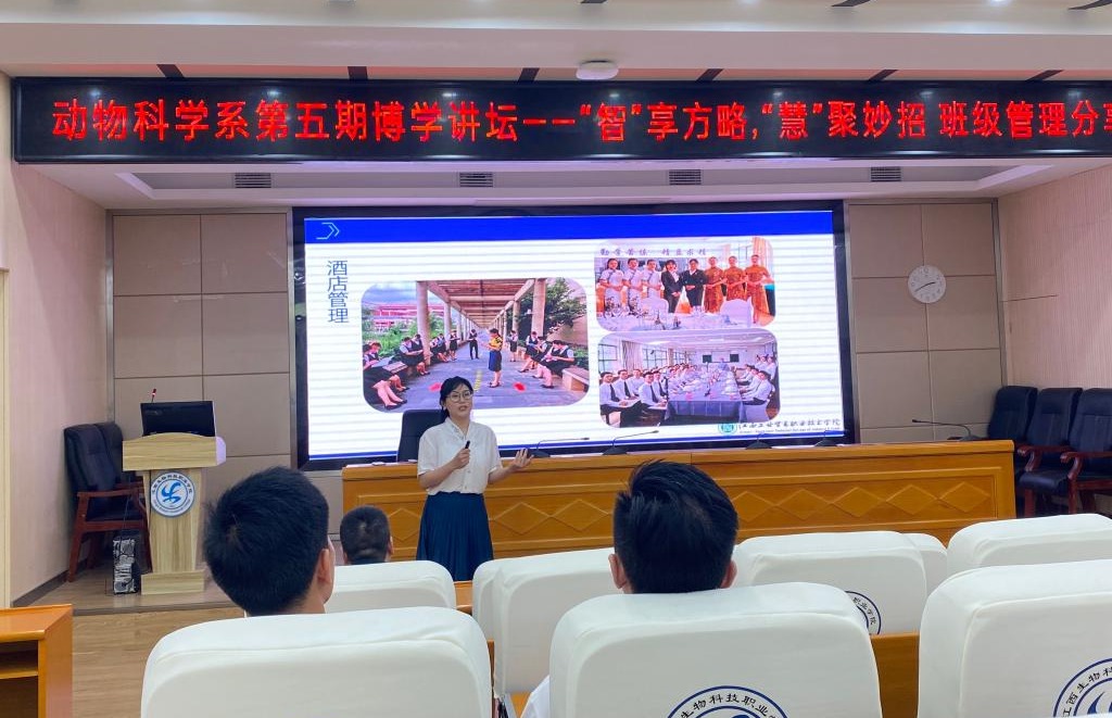 高校辅导员是开展大学生思想政治教育的骨干力量,是高校学生日常思想政治教育和管理工作的组织者、实施者和指导者,肩负着新时代育新人的神圣使命。为了加强辅导员队伍建设提升辅导员的育人水平和学生管理能力,5月29日,动物科学系在实验楼学术报告厅举行了第五期博学讲坛,本期讲坛的主题是“智”享方略,“慧”聚妙招-班级管理经验分享,动物科学系党支部书记及该系辅导员参加。
