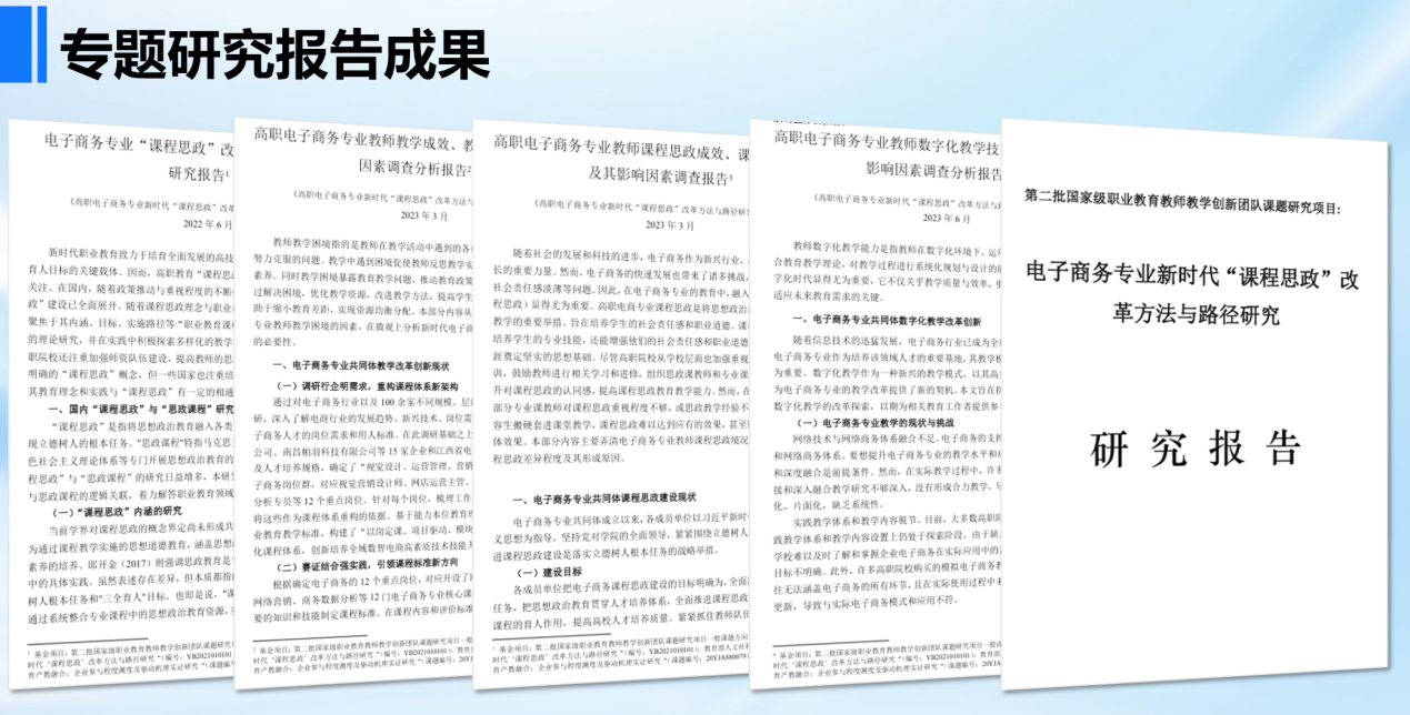 紧扣课题“实践赋能育人”结论,推动课程思政改革成果向实践转化,以赛促育融合锤炼学生品德,近两年指导学生获世界职业院校技能大赛奖项3项、全国一等奖4项,学生职业伦理认知达标率从72%提升至95%。组建“党员助农先锋队”,深入30余个乡村开展电商培训近5000人次,培育8个农特产品品牌,其中4个年销售额超2000万元。《电子商务专业课程思政教学指南》、《数字化资源库建设标准》等被6所院校采纳,“四融四共”模式获90余所高校调研学习,党建案例获全国高校思政网推广,课题获省级教学成果一等奖。