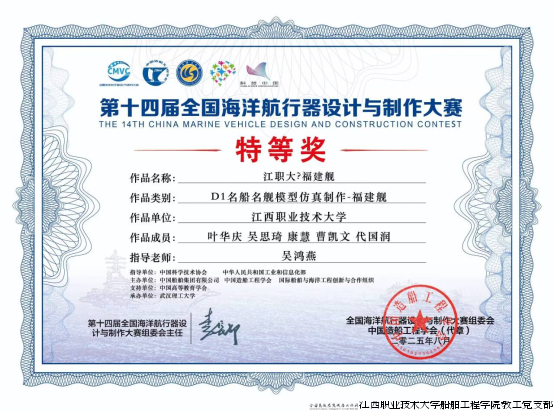 据悉,全国海洋航行器设计与制作大赛是我国船舶与海洋工程领域内规模最大、层次最高、影响最广的创新竞赛之一。学校将以本次大赛为契机,紧密围绕船舶工业绿色化、智能化发展趋势,持续深化产教融合,优化专业教学内容与方法,增强学生的职业适应力和发展潜力,为培养更多能够服务“海洋强国”战略的高端船舶类人才不断贡献力量。