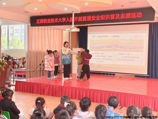 为向幼儿普及能源安全知识,培养节能环保意识,2026年1月9日,江西职业技术大学船舶工程学院“护管童行”服务队在李明华、江明两位党员老师的带领下,走进九江市濂溪区十里幼儿园,为幼儿园小朋友带来了一场以“石油和天然气的家在哪里”为主题的能源安全科普活动,通过趣味互动为孩子们打开了探索能源世界的大门。