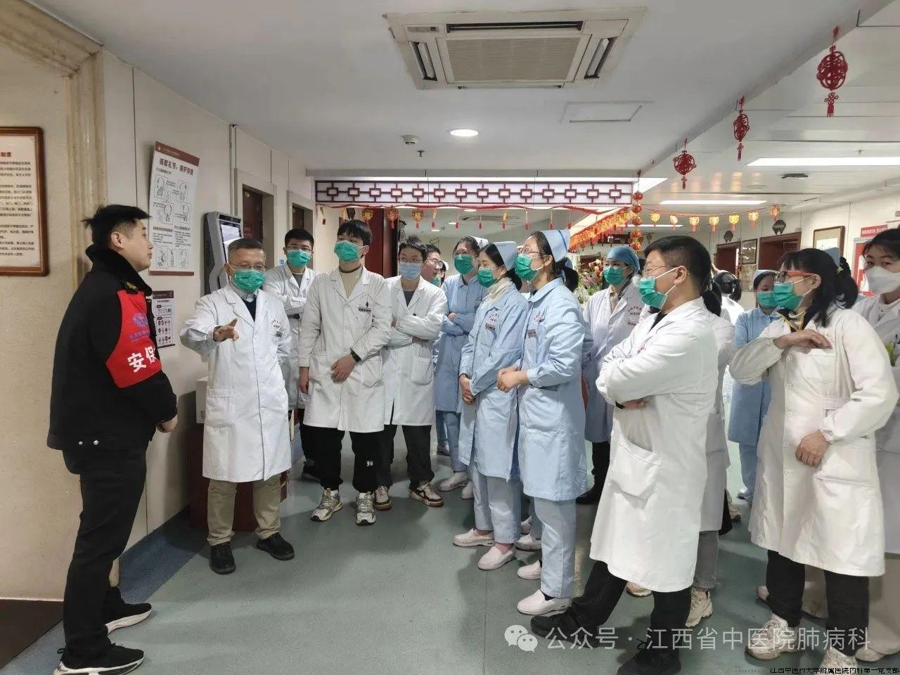 为进一步做好安全消防工作,增强医护人员的消防安全意识,普及消防器材的使用方法,提高火灾初期的扑救能力,2024年1月29日上午,肺病科张元兵主任及柯颖护士长邀请保卫处汤俊老师组织开展消防演练活动,肺病科全体医护人员以及学生们参加此次演练。