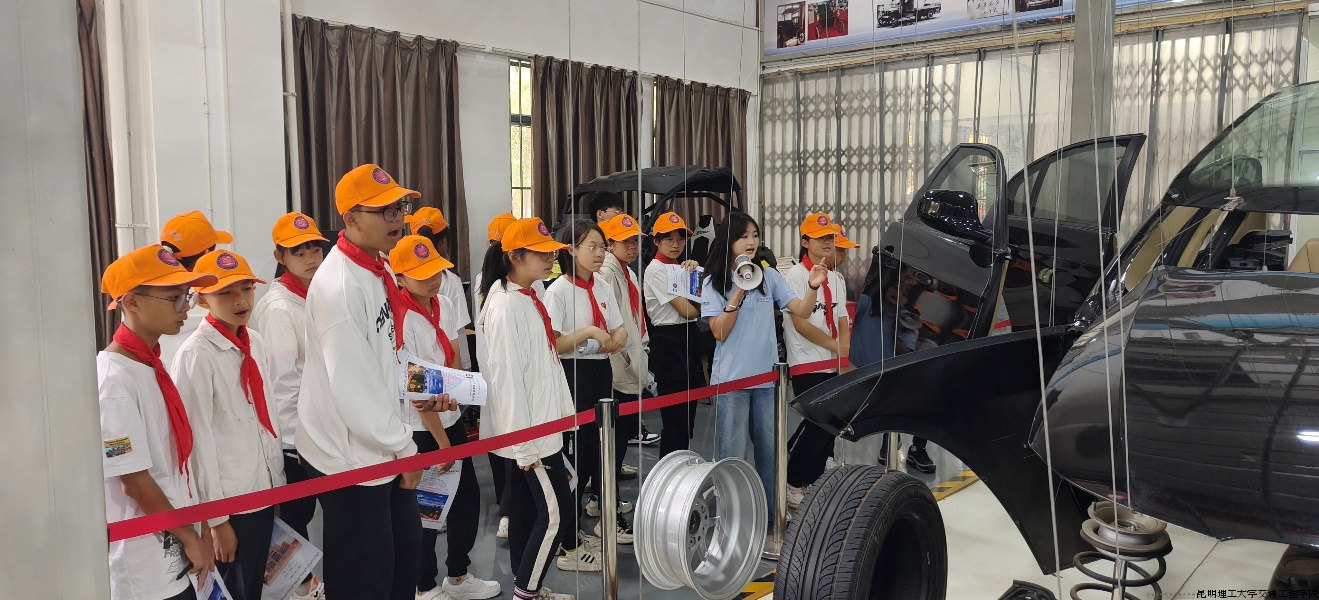 9月29日,昆明理工大学交通工程学院科普教育基地携手昆明理工大学附属中学举办“同心共育石榴籽,研思创智谱新篇”科普研学活动。 600余名中学生到昆明理工大学交通工程学院参加科普研学活动,15名研究生党员组成的“红色引擎”青年宣讲团为同学们带来了一场别开生面的“物理”课。