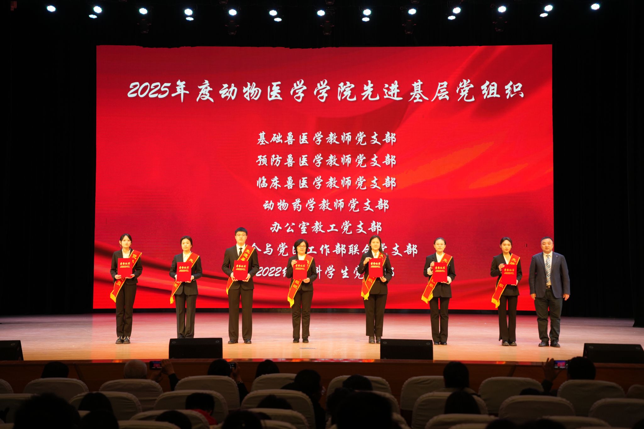 11月17日晚,动物医学学院“立德树人 薪火相传”主题思政课暨2025年度先优表彰大会在音乐厅剧场隆重举行。