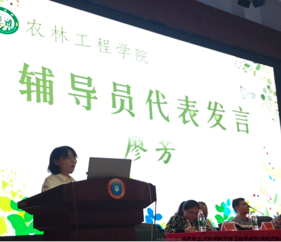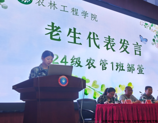 在师生代表发言环节,24级农管1班邹萱作为老生代表分享了学习体会与成长感悟;25级农管1班朱优优作为新生代表表达了对大学生活的期待与决心。教师代表李慧珍、辅导员代表廖芳分别发言,鼓励新生脚踏实地、积极进取,尽快适应大学节奏,书写精彩人生。在专业宣讲环节,刘莎莎、王先坤、段斌、张文泉、喻彩霞等老师分别介绍了畜牧兽医、动物医学、园林园艺、农村新型经济组织管理、旅游管理等专业的特色与发展前景,帮助新生深入了解专业方向,明确学习目标。