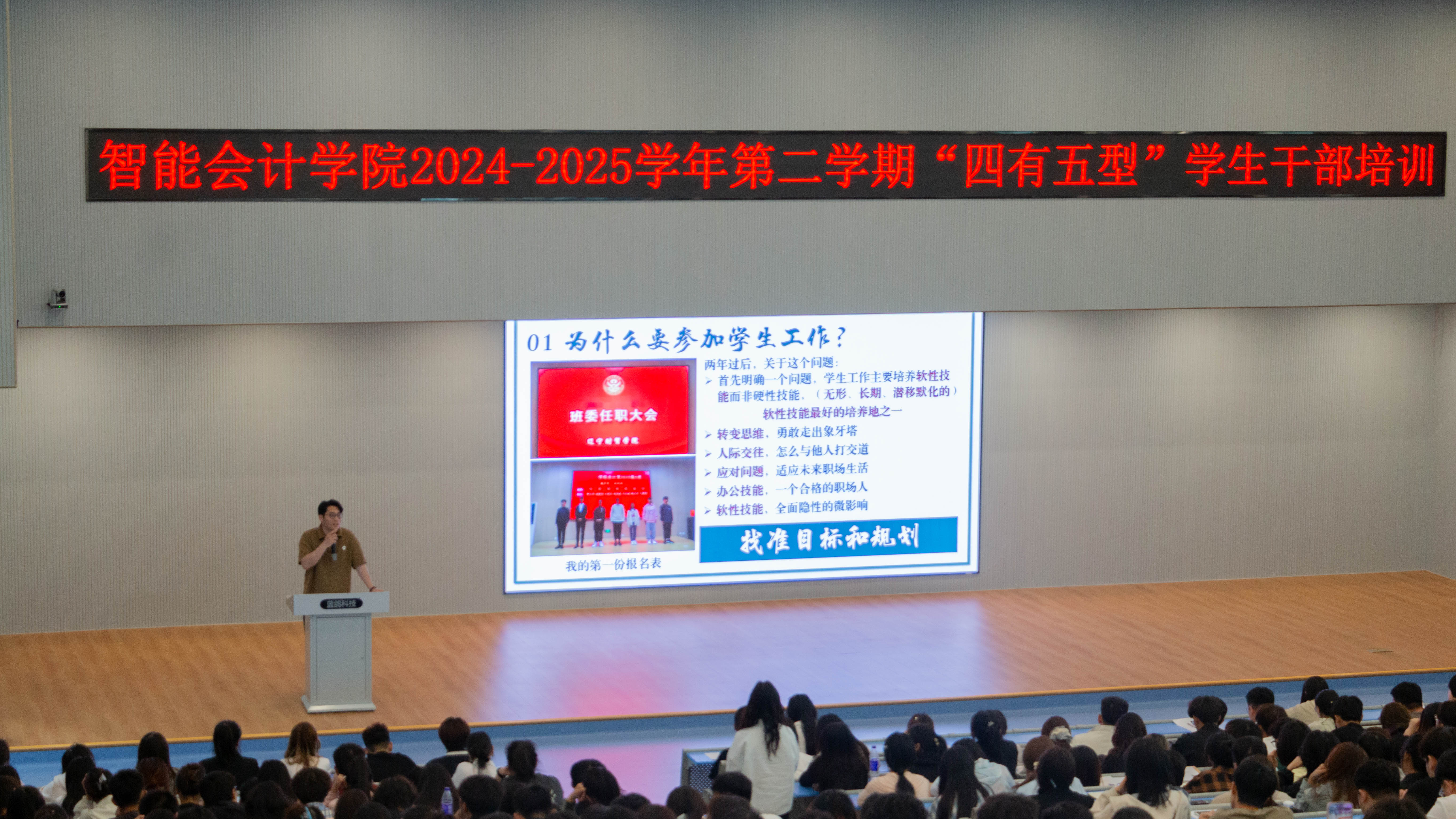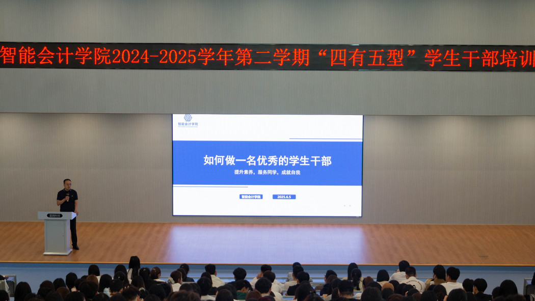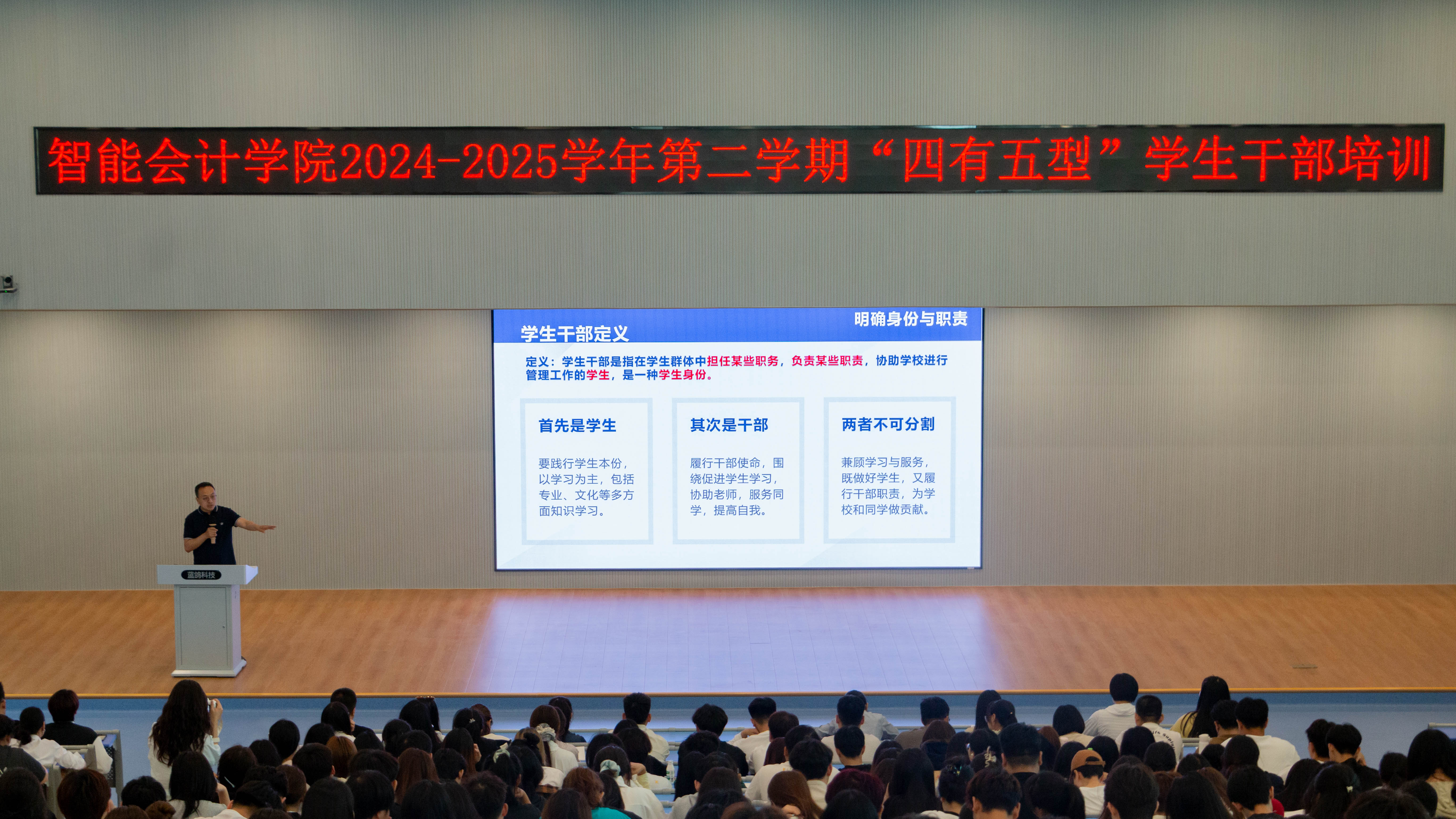 智能会计学院开展“智会先锋・聚力前行”—“四有五型”学生干部系列培训。以“口中有理、肩上有责、心中有爱、行动有力”为准则,旨在打造“学习、实干、协作、创新、服务”五型干部队伍,立足专业数字化转型,采用“理论+实践+考核”模式,全面提升学生干部素养。