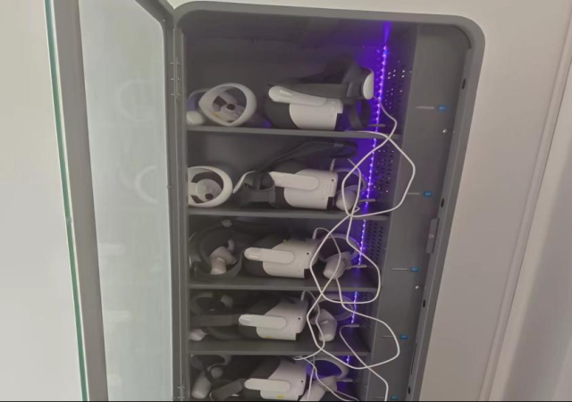 实验室分为教学区和文化体验区,配备了移动式虚拟现实一体机套装、英语沉浸式智慧教学课件,VR机柜、虚拟现实头显智慧学习机控制系统、路由器、交换机、AP、桌椅、展示柜等设施设备。实验室立足满足实验教学的基础,打造智慧实验环境,提高学生视听说能力的基础上,开展沉浸式教学,通过VR技术给学生带来身临其境的视觉冲击,提升课程的趣味性及体验感。