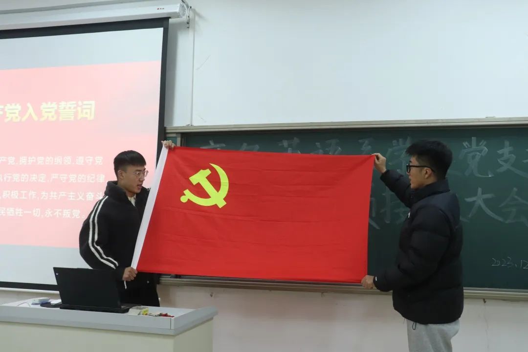 会议严格按照党组织接收预备党员的程序进行。大会伊始,发展对象依次上台汇报了对党的认识、入党动机、本人履历、家庭和主要社会关系情况。随后,入党介绍人介绍发展对象有关情况,并对其能否入党表明意见。与会正式党员采用无记名投票的方式进行表决。大会决议同意接收为预备党员。会议最后,全体党员面对党旗庄严宣誓,重温入党誓词。
