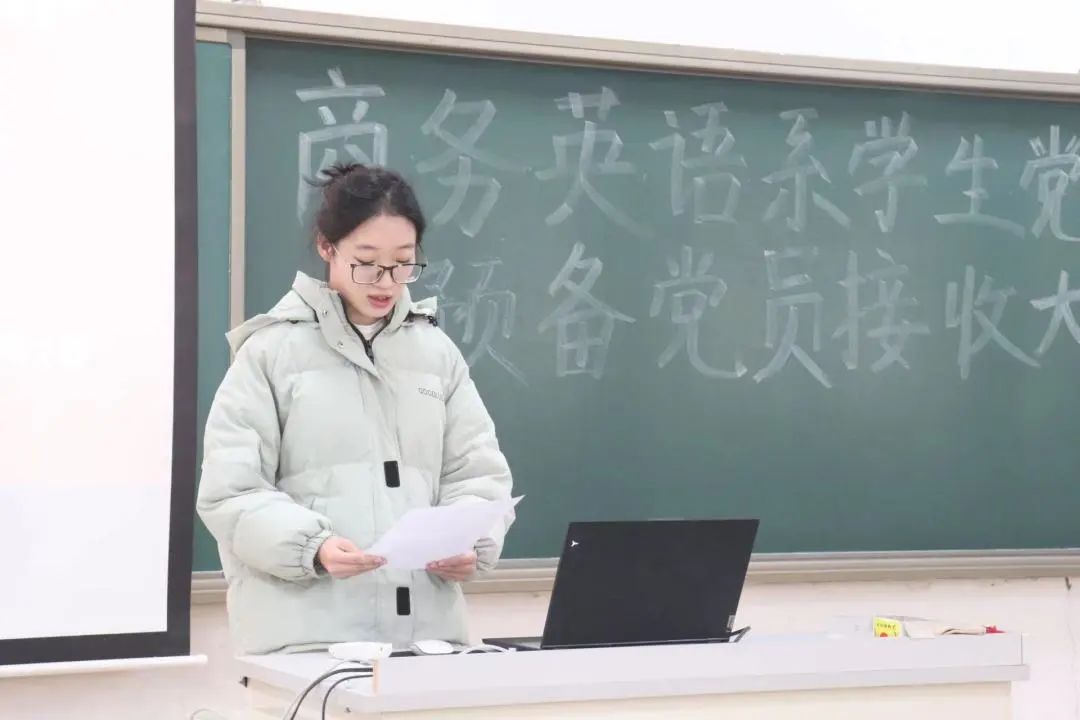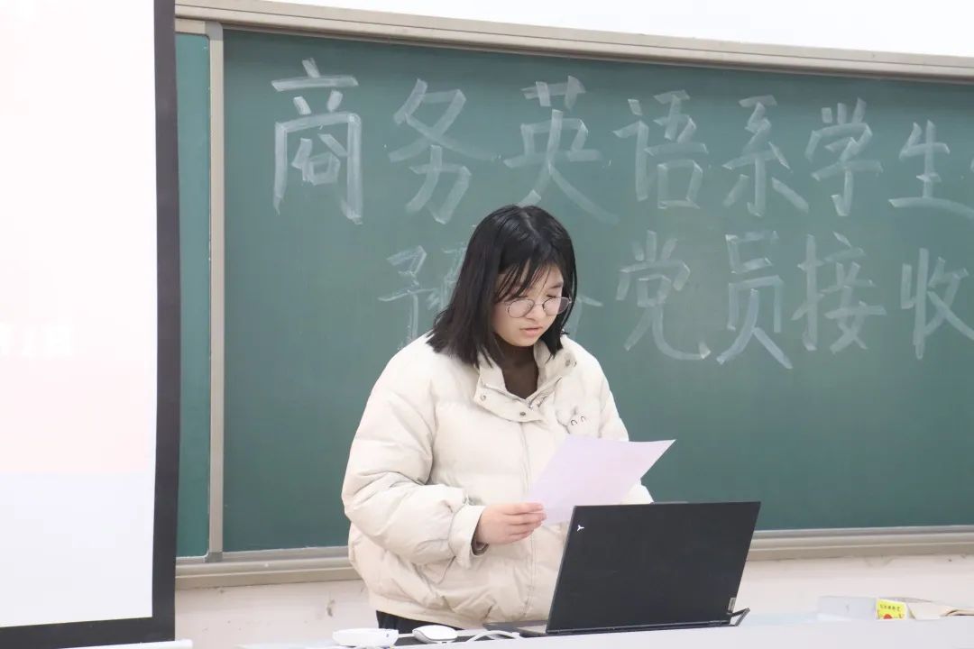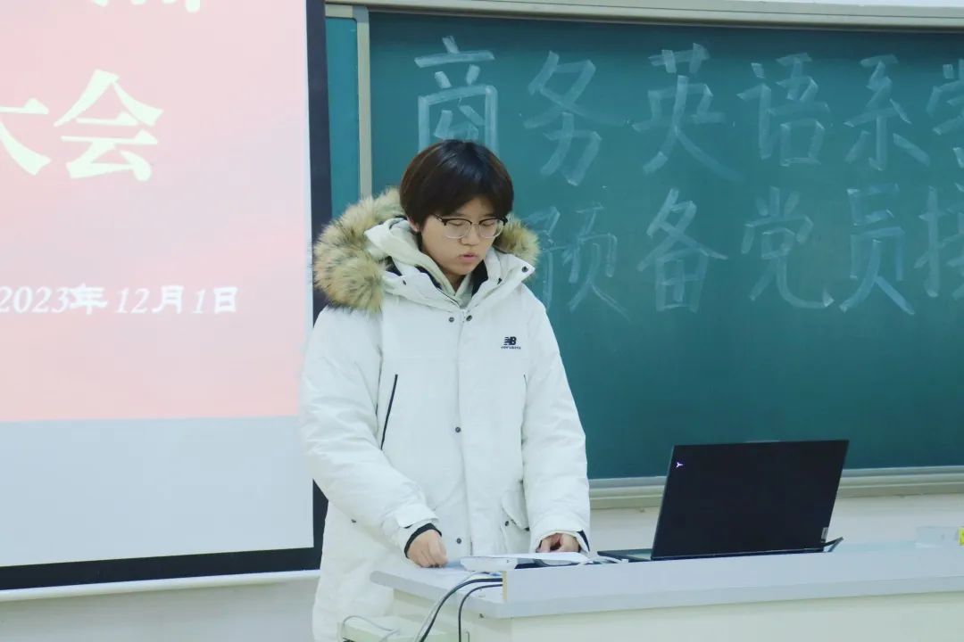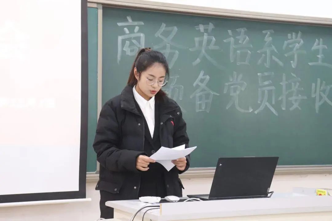 为保证党员发展质量,增强党组织工作的透明度,切实做好新时代发展党员工作,2023年12月1日,商务英语系学生党支部于外国语学院B112举行预备党员接收大会。
