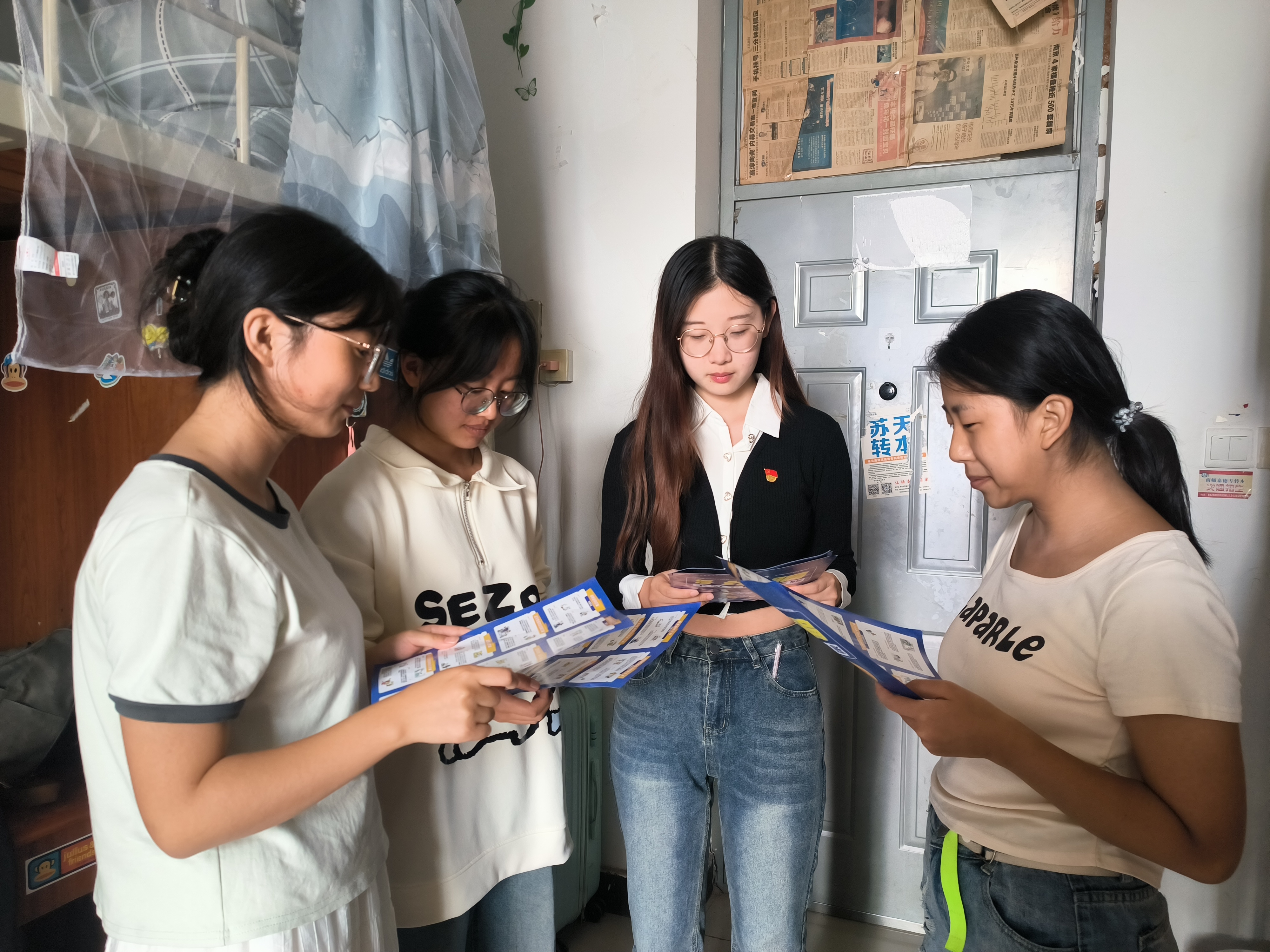 新生开学将近半个月,为提高同学们的警惕性和对虚假信息的辩知能力,避开非法集资校园诈骗的陷阱,不要因贪图小便宜而上当受骗,有效保障自身权益不受侵害。让大家明白财富不可能不劳而获,只有脚踏实地才能获得。9月26日,院学生党支部特组织党员深入新生寝室,为新生进行反诈宣传。