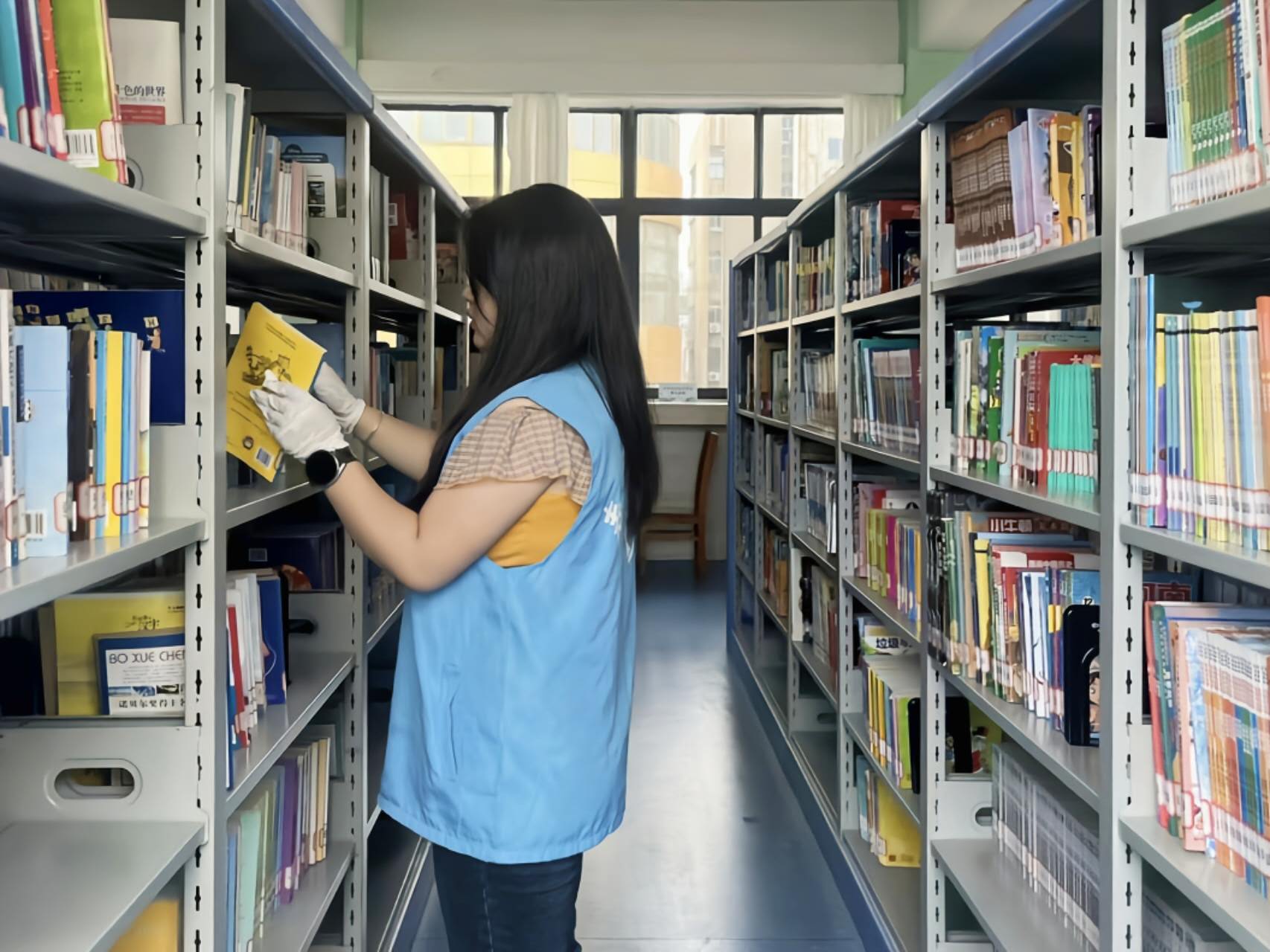 随后,志愿者分工协作,有条不紊地投入到工作中。志愿者们手持检索工具,穿梭在书架之间,对照图书编号,将散落于各处的图书逐一收集;依据分类规则,仔细辨别文学、科普、绘本等不同类目,重新梳理排序,并将一本本图书准确归位。面对复杂的索书号,志愿者们反复核对,确保每一本书都能找到属于自己的“小格子”。
