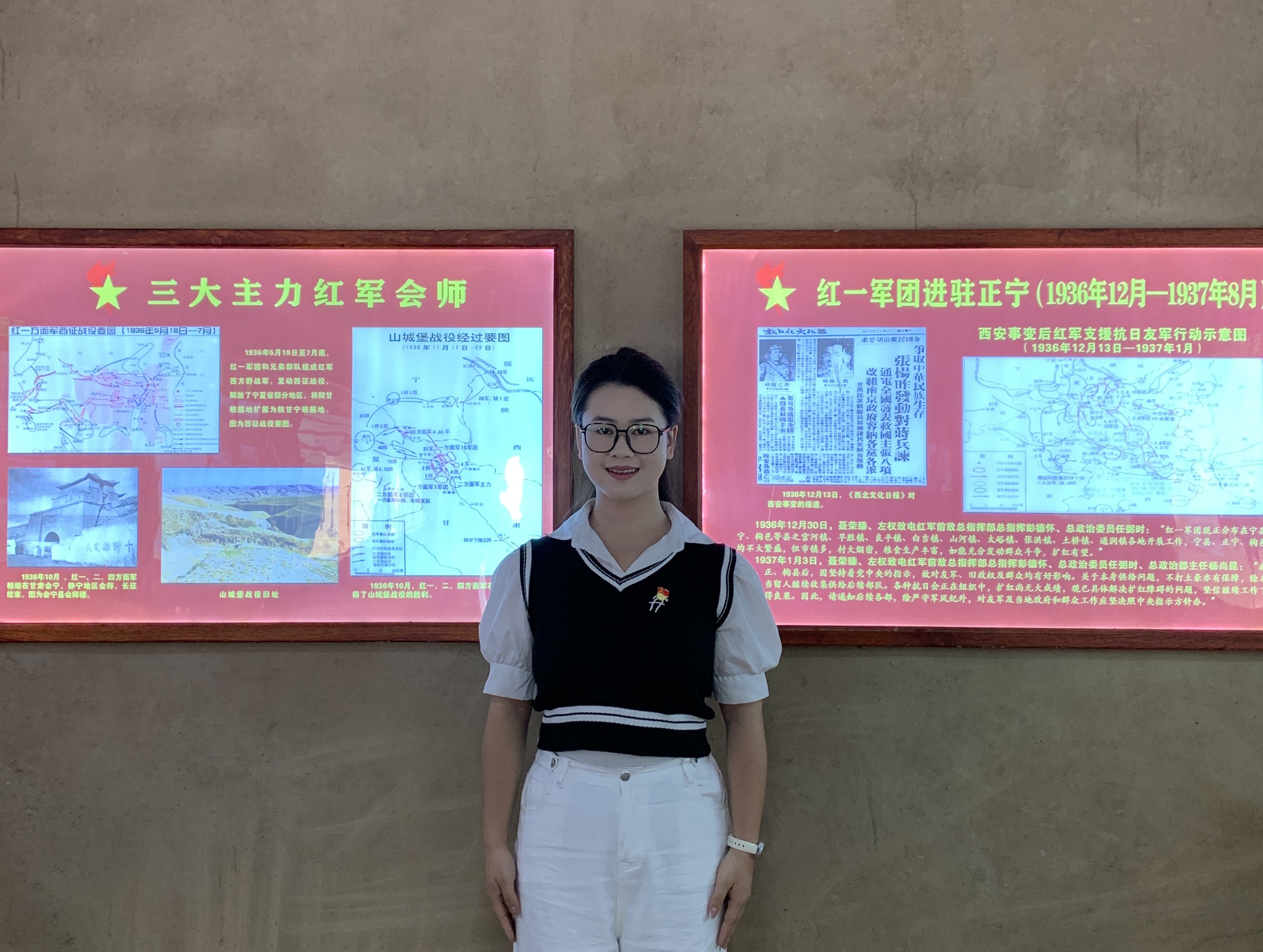 作为新时代青年党员,我更加懂得:革命传统并非尘封的历史,而是照亮前路的火炬。站在“小平足迹”展厅前,我以青春之名宣誓:必将传承“实事求是”的精神坐标,把对党的忠诚化作扎根乡野的行动。在数学教育的讲台上,在政策宣讲中,以“破土新芽”之姿续写军民鱼水新篇!