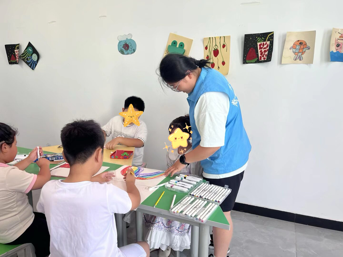 下午的活动聚焦学习辅导,充分体现了科技支教“启智”的核心。15名孩子带着暑期作业中的“拦路虎”而来,特别是数学逻辑题和科学知识疑问。志愿者们凭借扎实的专业素养,化身“知识工程师”,不仅耐心讲解,更注重思维引导和科学方法的传授。他们利用几何画板动态演示数学原理,通过在线资源库查找科学实验视频辅助理解,甚至用编程思维帮助孩子拆解复杂问题。科技工具的引入,使答疑解惑的过程更加直观高效,有效提升了孩子们运用科学方法解决问题的能力。