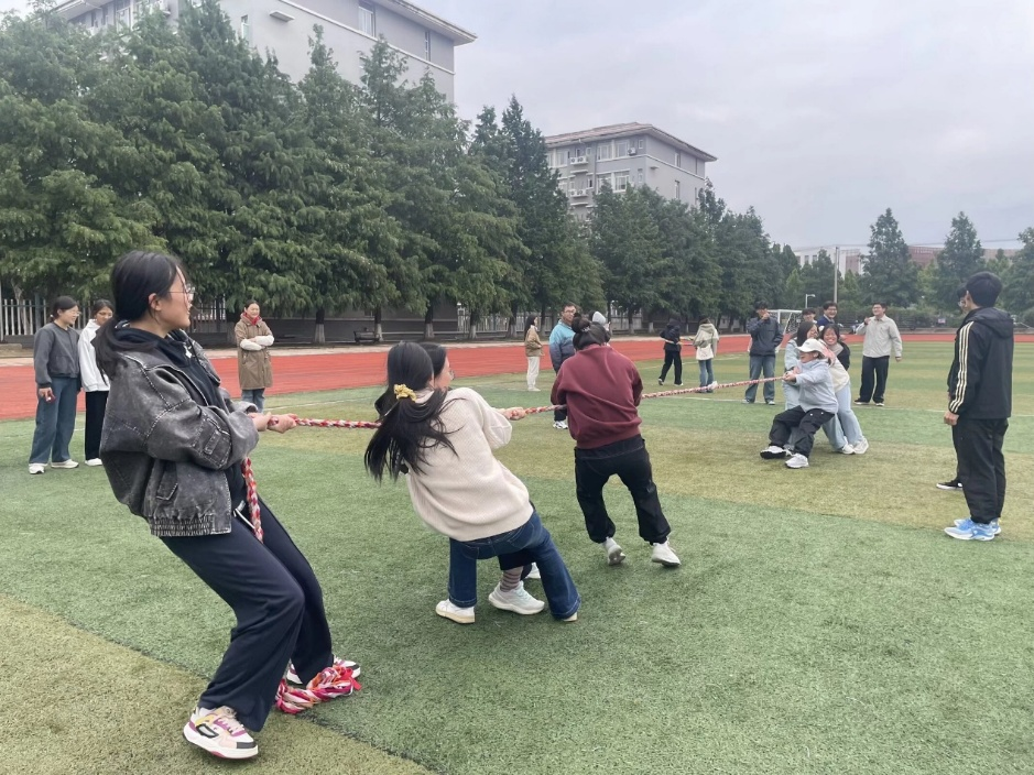 紧随其后的是“力拔山‘河’——拔河”项目。参赛队员紧握粗绳,双脚蹬地、身体后倾、重心下沉,做好对抗准备。比赛以两两队伍比拼的形式展开,裁判哨声一响,双方队员齐声呐喊,使出全力拉扯绳索,脸颊因用力而涨红,手臂上的肌肉紧紧绷紧。场边观众也被感染,加油声、欢呼声此起彼伏,经过多轮两两对决,最终有队伍凭借默契配合与顽强毅力斩获该项目冠军。