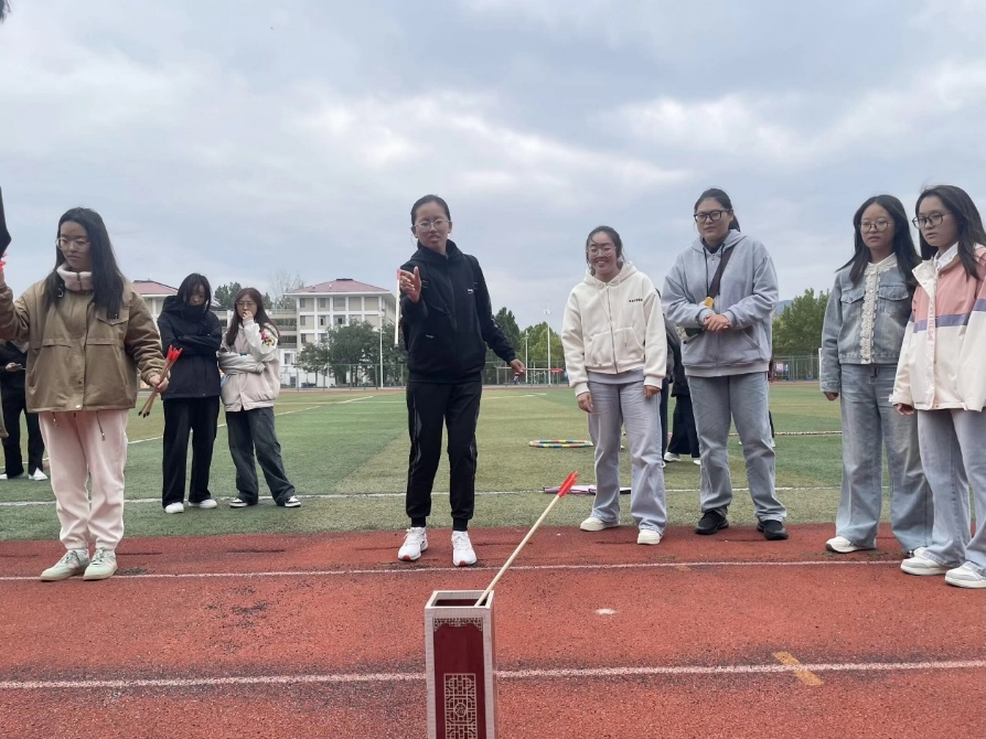 投‘壶’飞扬——投壶接力赛” 作为首个项目率先亮相。参赛队员依次上场,每人手持5支箭矢,相距2米瞄准壶口投掷。队员们凝神静气,精准投掷,每一次命中都引来阵阵喝彩。比赛既考验个人定力,更锤炼团队协作精神。