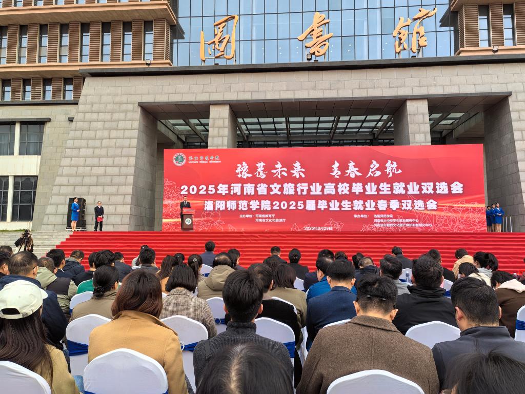 为深入贯彻落实中央、省市关于就业工作的决策部署,实现毕业生和优质用人单位精准对接,促进毕业生高质量就业。3月29日,2025年河南省文旅行业高校毕业生就业双选会暨洛阳师范学院2025届毕业生就业春季双选会在学校图书馆前举办。我院优秀毕业生、云南花腰傣开元森泊度假乐园总经理秦站高作为唯一企业代表发言。