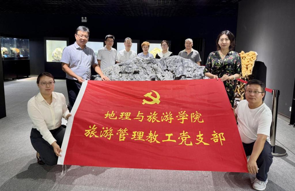 为贯彻落实习近平总书记在河南考察时重要讲话精神,强化全省党建标杆院系建设,高质量推进高校“双带头人”教师党支部书记“强国行”专项行动。2025年7月7日,旅游管理教工党支部“强国行”团队赴洛阳市旺鼎石文化博览园,就其参评国家 3A 级旅游景区的建设与论证工作展开深入指导。